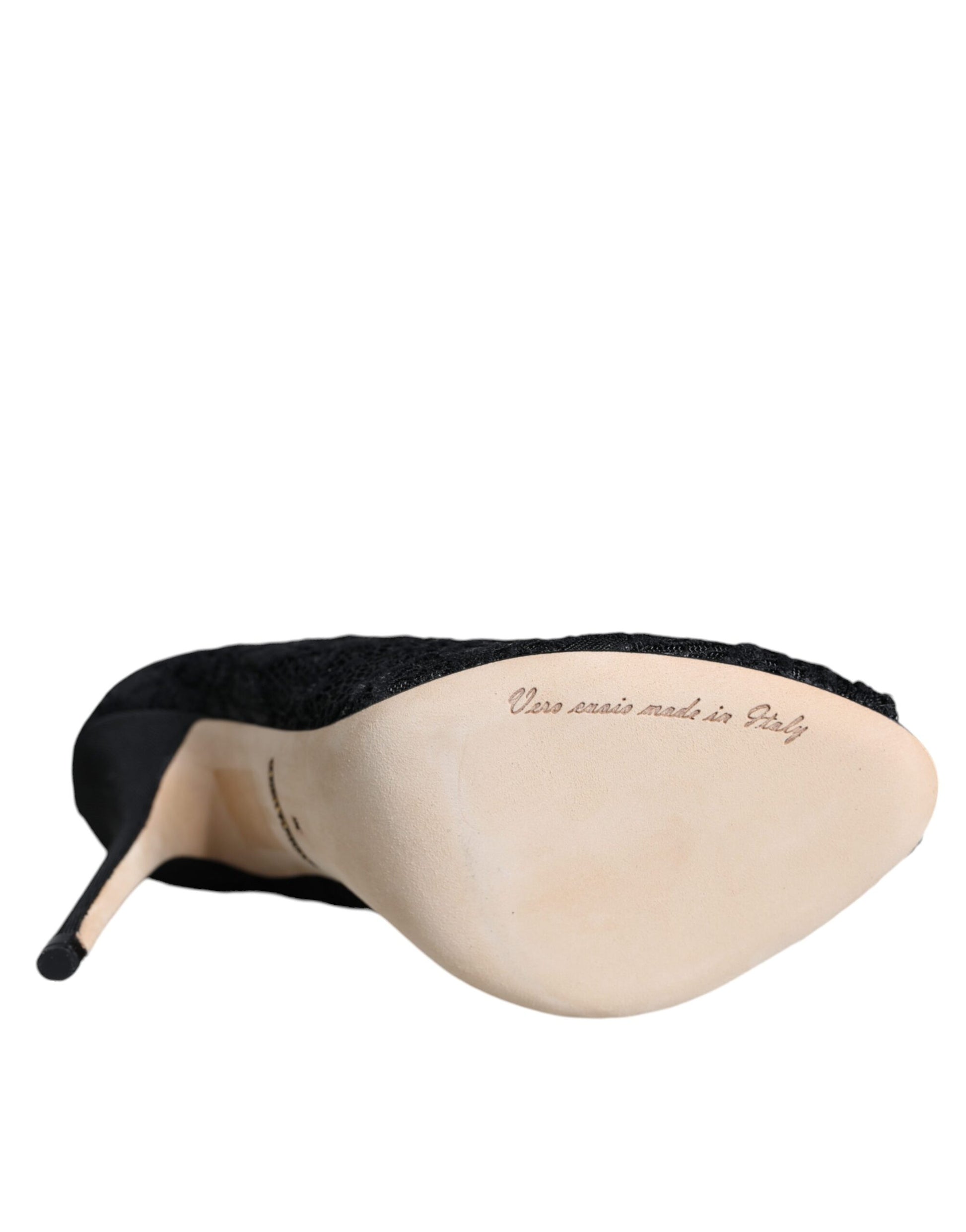 Dolce & Gabbana Black Lace Stretch Heels Mid Calf Boot Shoes