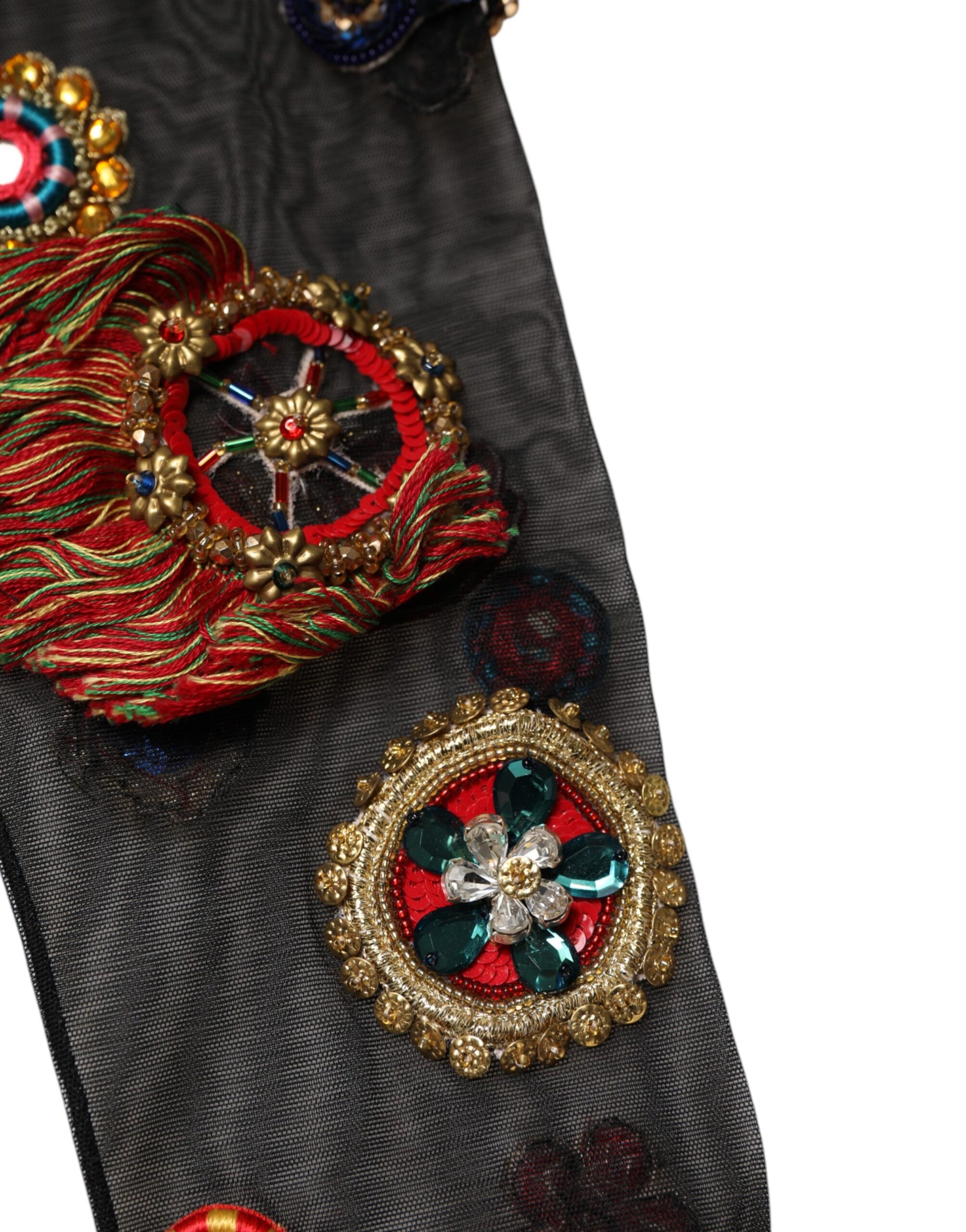 Gorgeous brand new, 100% Authentic Dolce & Gabbana nylon stretch Carretto sequined crystal embellished stockings socks. Model: Stockings Collection: Gambaletto Tulle FLRCP Carretto Material: 84% Nylon, 16% Elastane Color: Black with gold metal detailing Handsown multicolor sequined and crystal embellishment Logo details Made in Italy