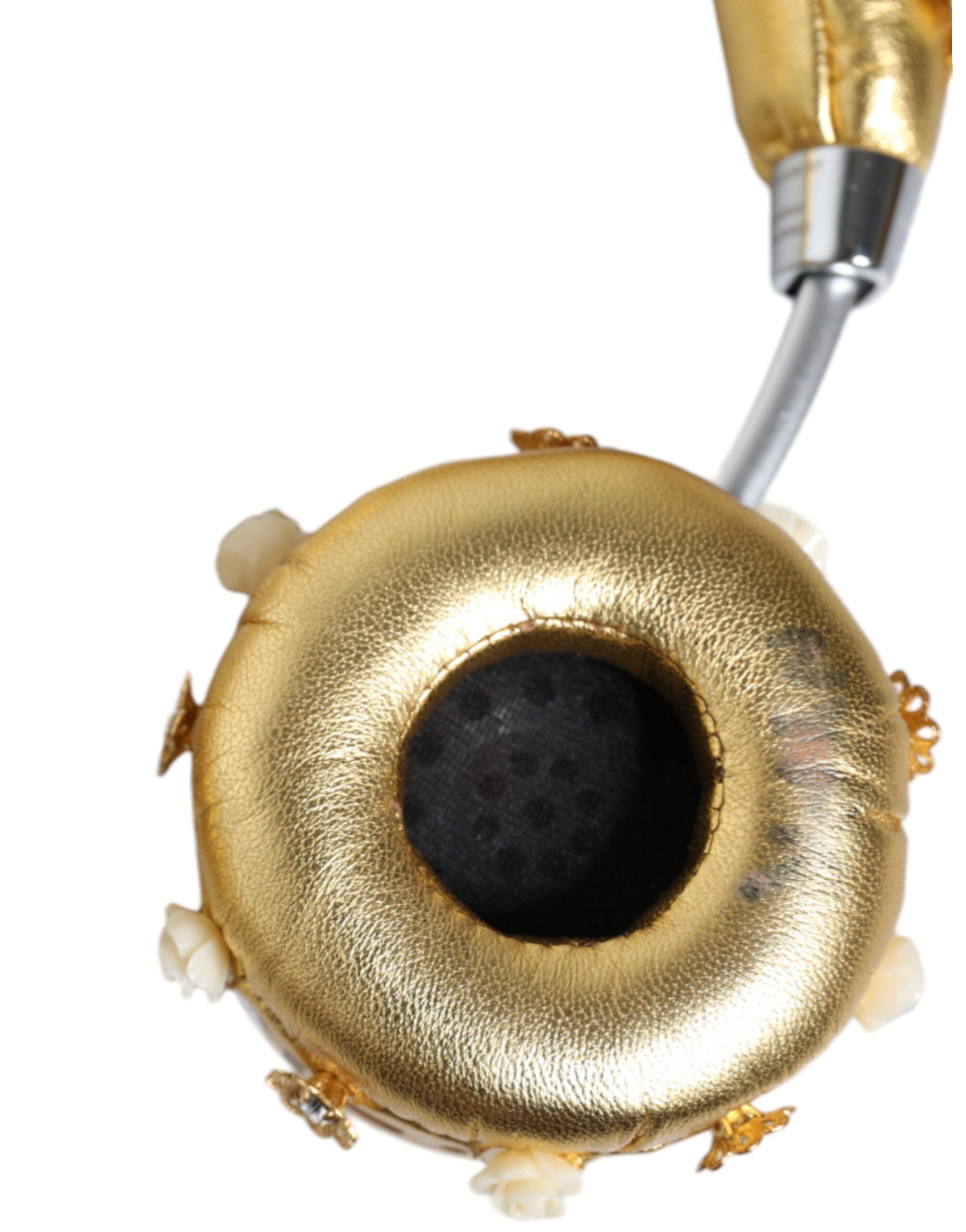Dolce & Gabbana Gold Leather Floral Crystal Angel Headphones
