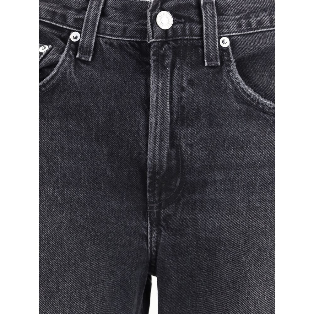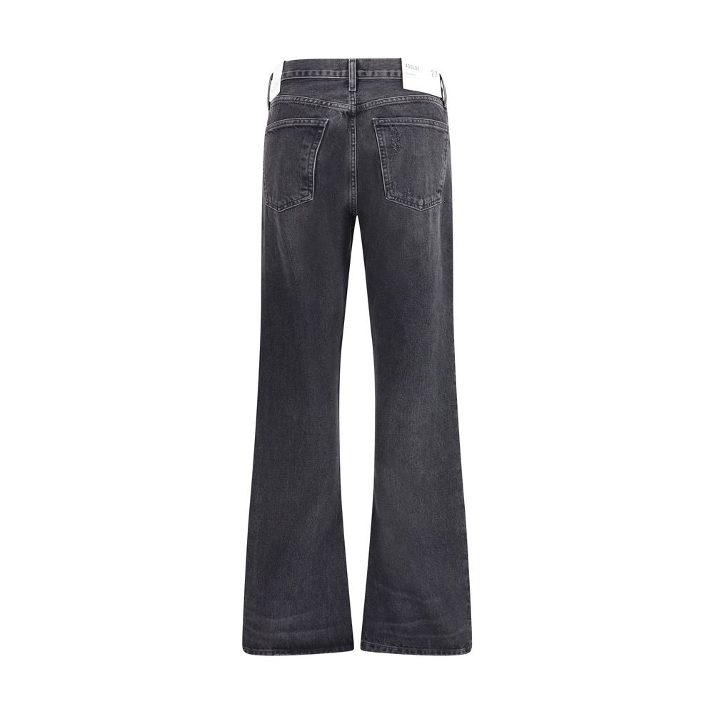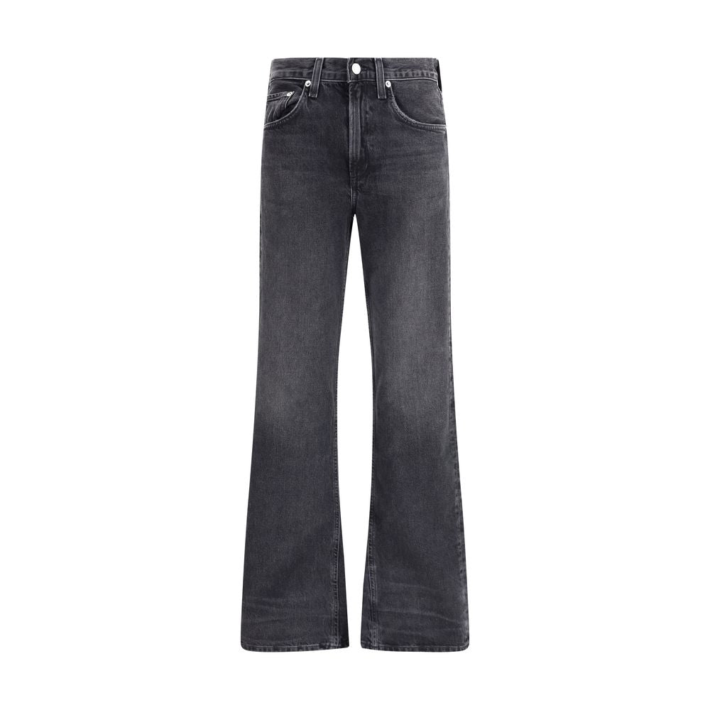 Kick Boot Jeans mit mittlerer Taille, tailliertem Schnitt an der Hüfte und leichtem Schlag unten, aus schwarzem, regeneriertem Denim mit Used-Effekt, Schattierungen und Whiskers für einen weichen und bequemen Vintage-Look.