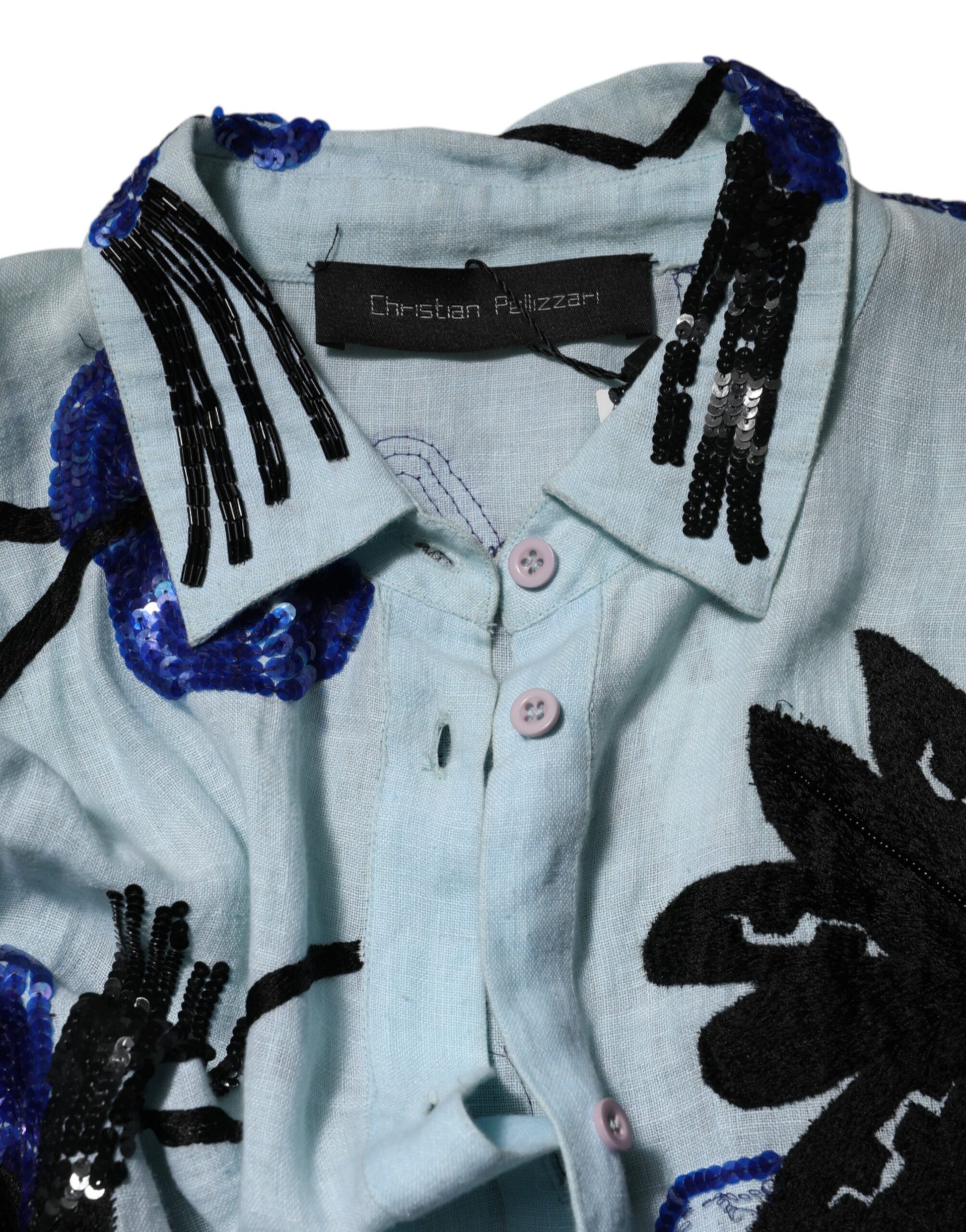 Christian Pellizzari – Blaues Maxi-Hemdkleid mit Paillettenverzierung