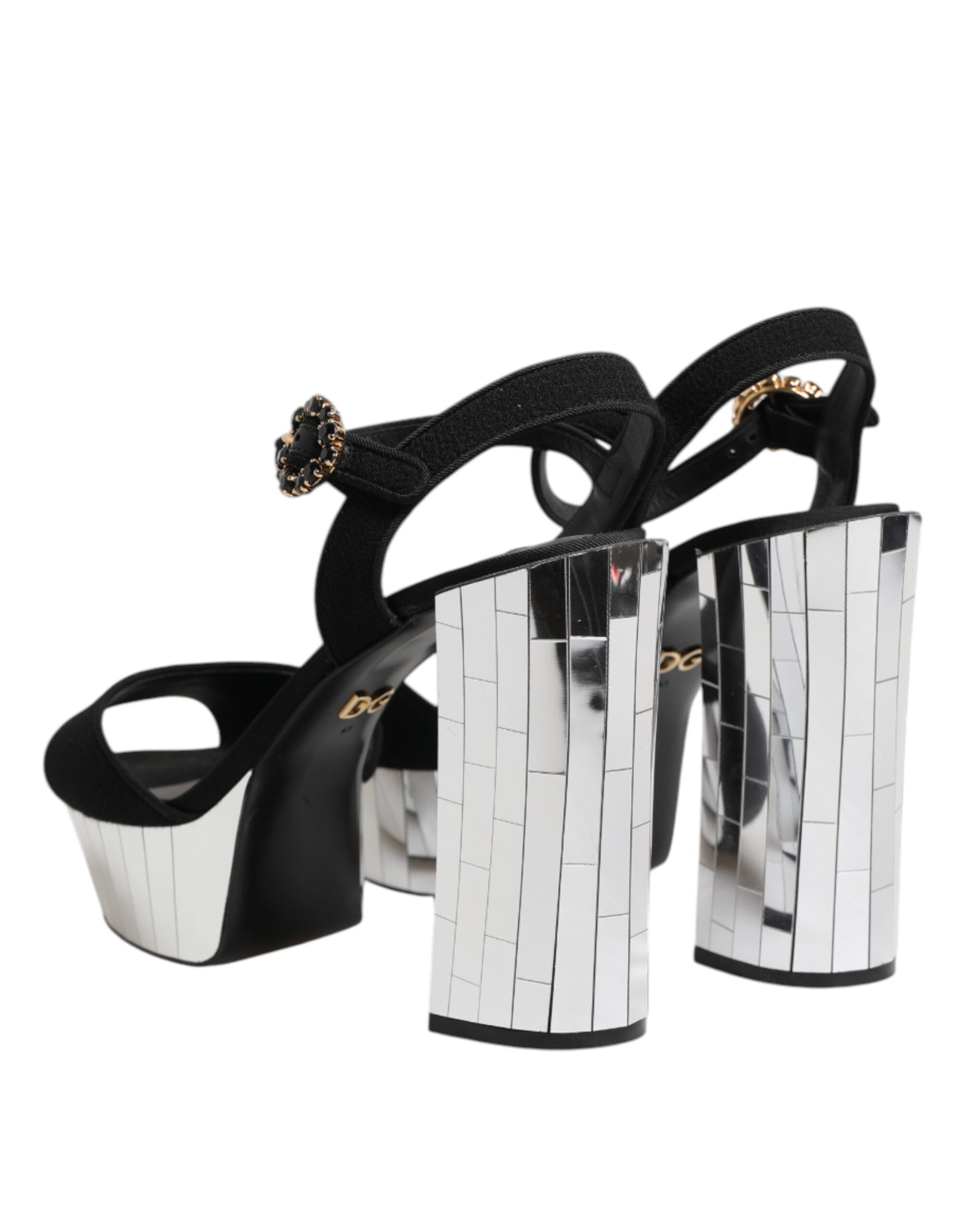 Wunderschöne, brandneue, 100 % authentische Sandalen von DOLCE & GABBANA mit verspiegelten Absätzen und verstellbarem Knöchelriemen.