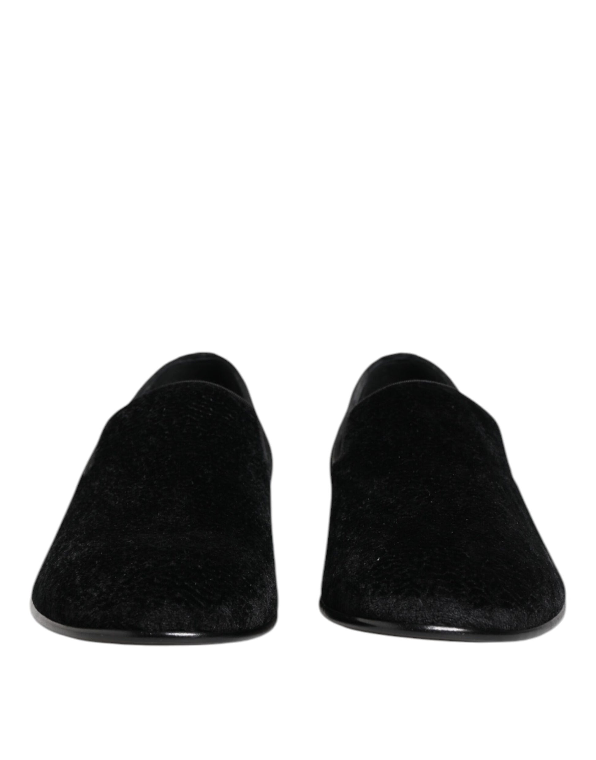 Wunderschöne, brandneue, 100 % authentische Herren-Loafer von Dolce & Gabbana. Modell: Formelle Abendschuhe Farbe: Schwarz Material: Samt Lederlaufsohle Logodetails Hergestellt in Italien Sehr exklusiv und hochwertig verarbeitet