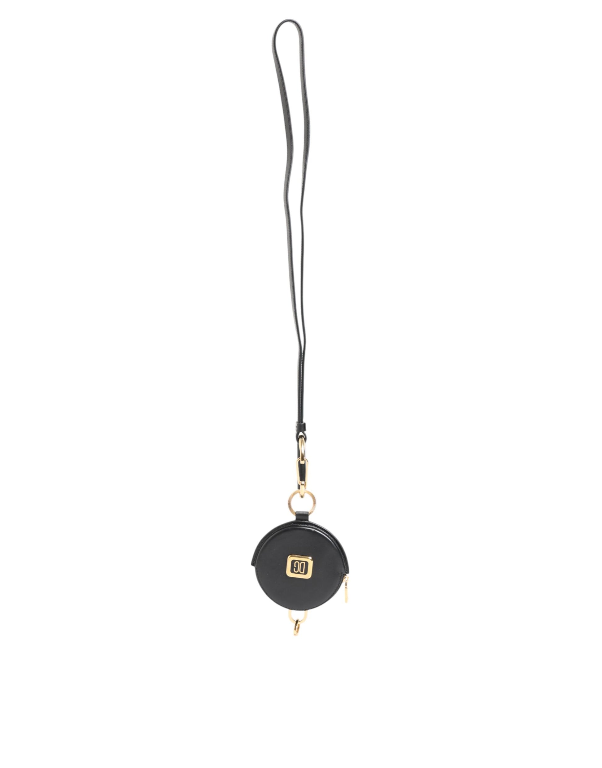 Absolut umwerfend, 100 % authentisch, brandneu mit Etikett. Runde Geldbörse aus schwarzem Leder von Dolce & Gabbana mit Logo-Plakette auf der Rückseite, Münzfach und Schlüsselband.
