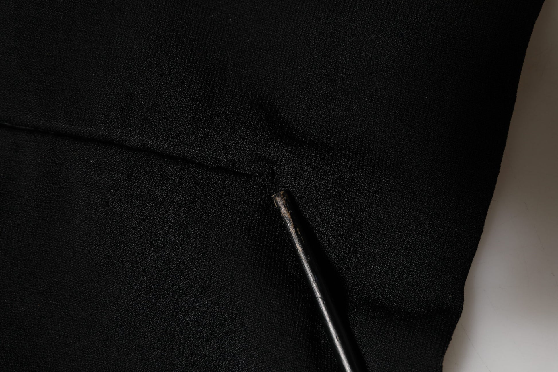Kurzer Pullover aus glatter, schwarzer Viskose für eine elegante und schmeichelhafte Passform. Mit klassischem Rollkragendesign und langen Ärmeln kombiniert dieses Oberteil Raffinesse mit einer modernen, kurzen Silhouette – perfekt zum Kombinieren mit hoch taillierten Röcken oder Hosen für einen raffinierten und dennoch modernen Look.