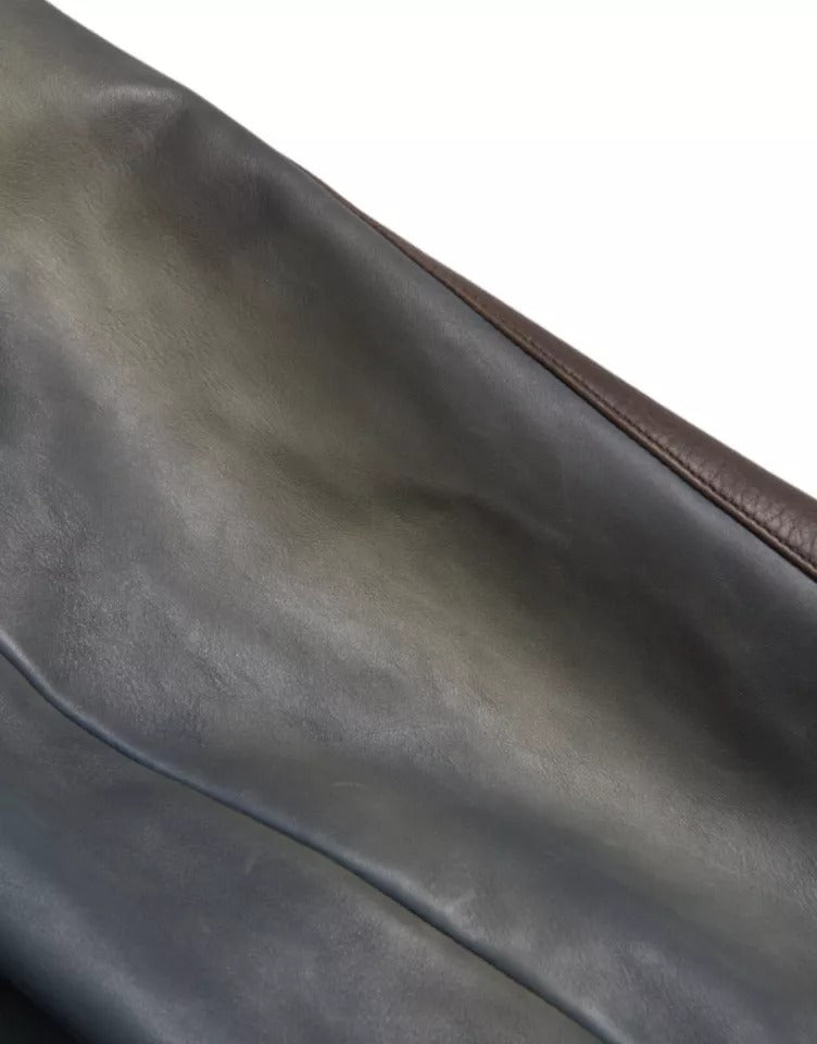 Dolce & Gabbana – Blaue Biker-Blousonjacke aus Leder mit durchgehendem Reißverschluss