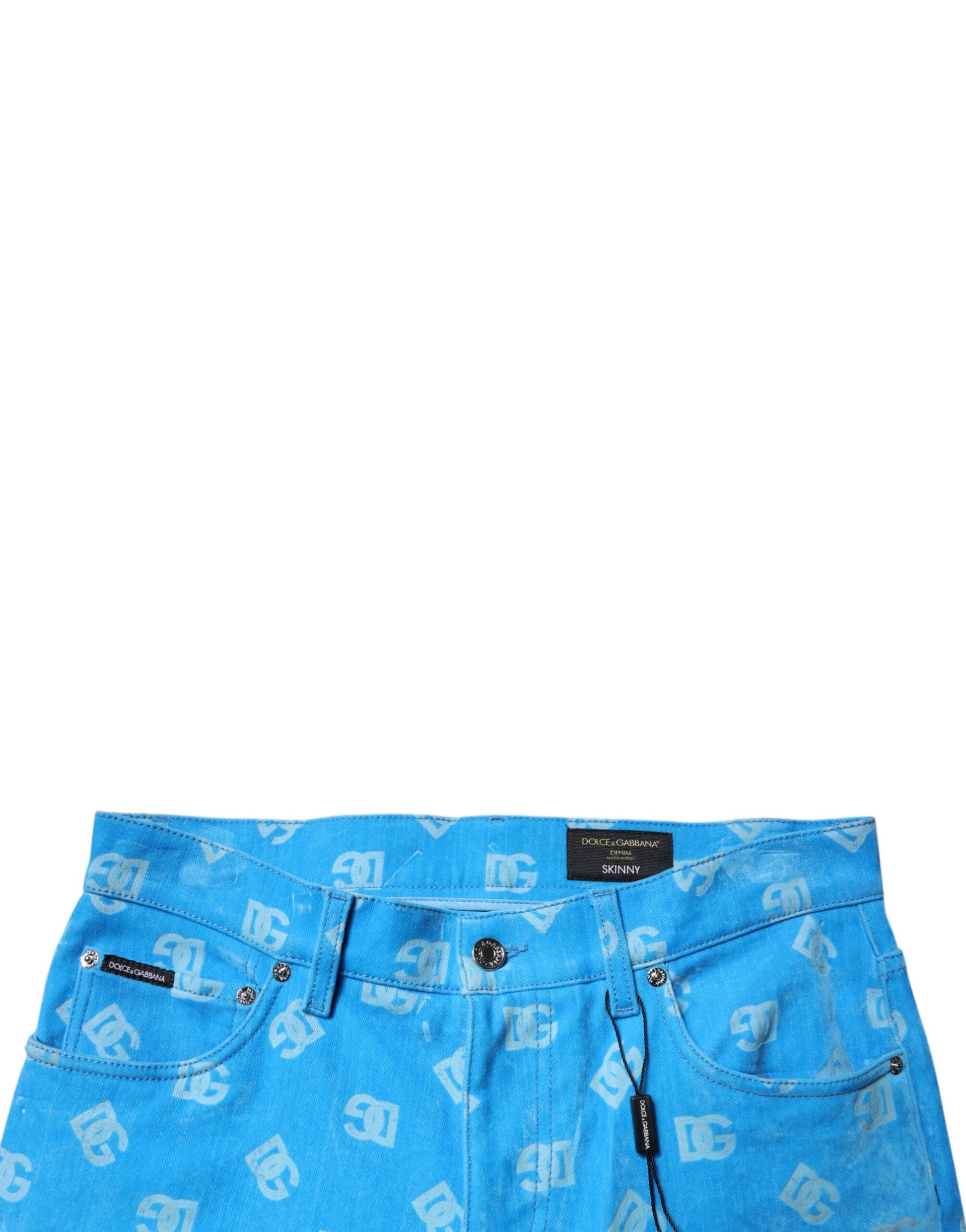 Wunderschöne, brandneue, 100 % authentische Skinny-Jeans aus Baumwolle von Dolce & Gabbana mit durchgehendem Logo-Aufdruck. Modell: Skinny-Denim Farbe: Blau Material: 100% Baumwolle Passform: Normale Passform Reißverschluss und Knopfverschluss Logodetails Hergestellt in Italien Sehr exklusiv und hochwertig verarbeitet