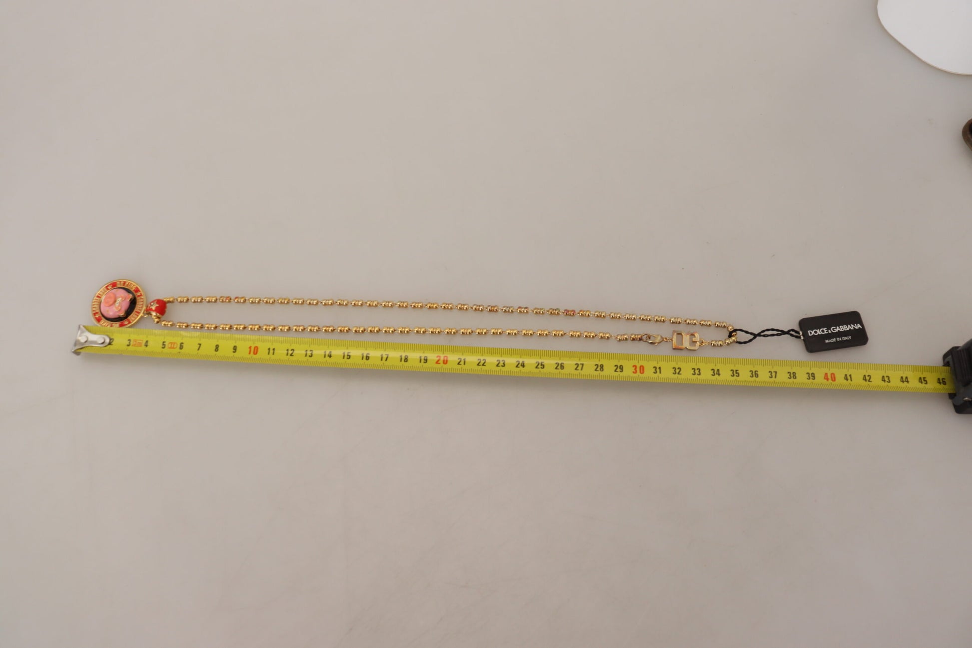 Dolce & Gabbana – Halskette mit Logo und Anhänger „Super Pig“ aus goldenem Messing
