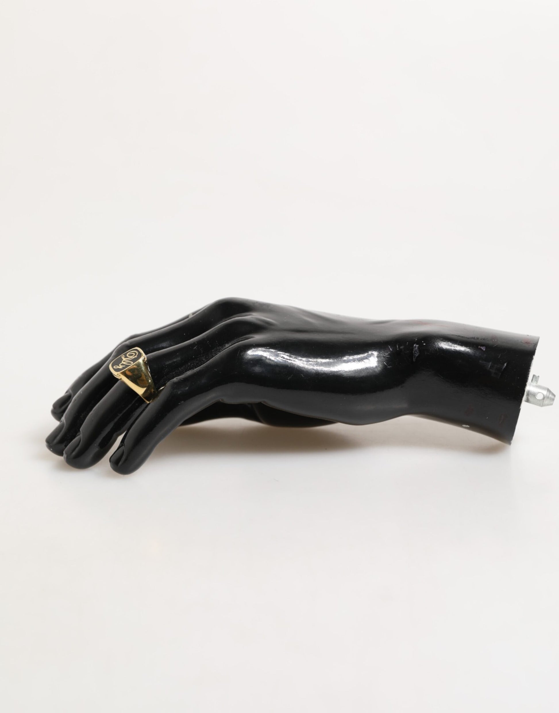 Wunderschöner, brandneuer, 100 % authentischer Siegelring von Dolce & Gabbana mit eingraviertem DG-Schriftzug auf einer glatten, schwarzen Emaille-Oberfläche. Dieser luxuriöse Ring wurde in Italien aus poliertem Messing (Ottone) gefertigt und setzt mit seiner klobigen Silhouette und dem Vintage-inspirierten Siegelstil ein starkes Modestatement.