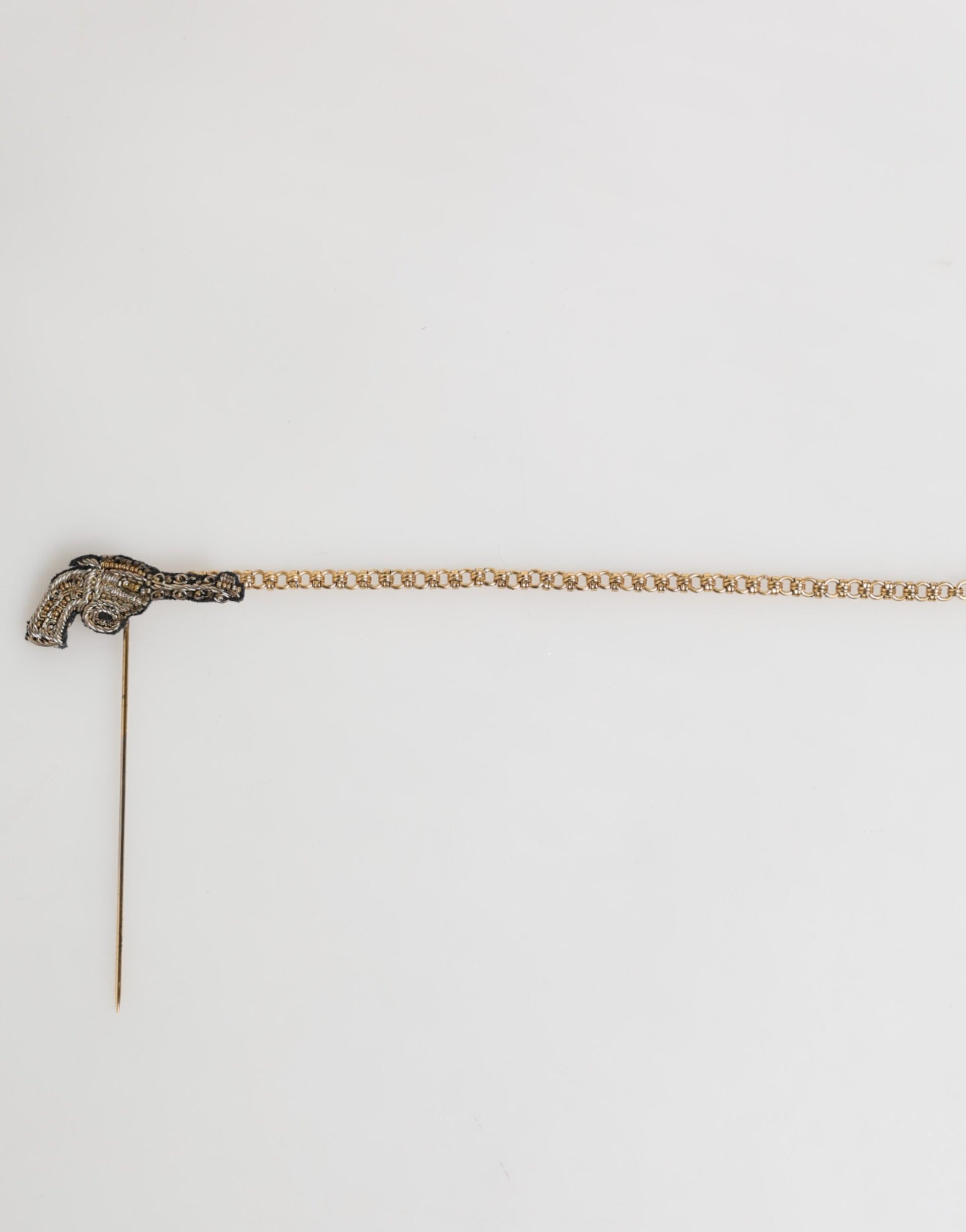 Wunderschöne, brandneue, 100 % authentische Dolce & Gabbana Herrenbrosche mit Revers. Im Vintage-Revolver-Design aus hochwertigem Messing und Kupfer mit gealtertem Gold-Finish. Dieses einzigartige Accessoire verleiht jeder Jacke oder jedem Blazer ein markantes, markantes Statement und spiegelt den gewagten und unverwechselbaren Stil der Marke wider.