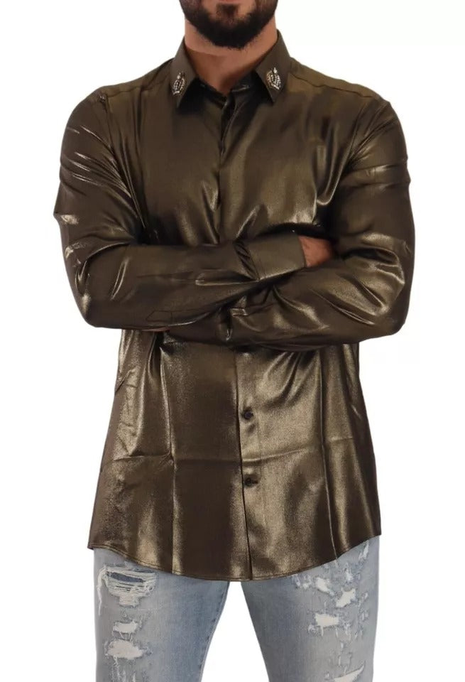 Dolce & Gabbana – Seidenoberhemd mit DG-Kronenstickerei in Metallic-Gold