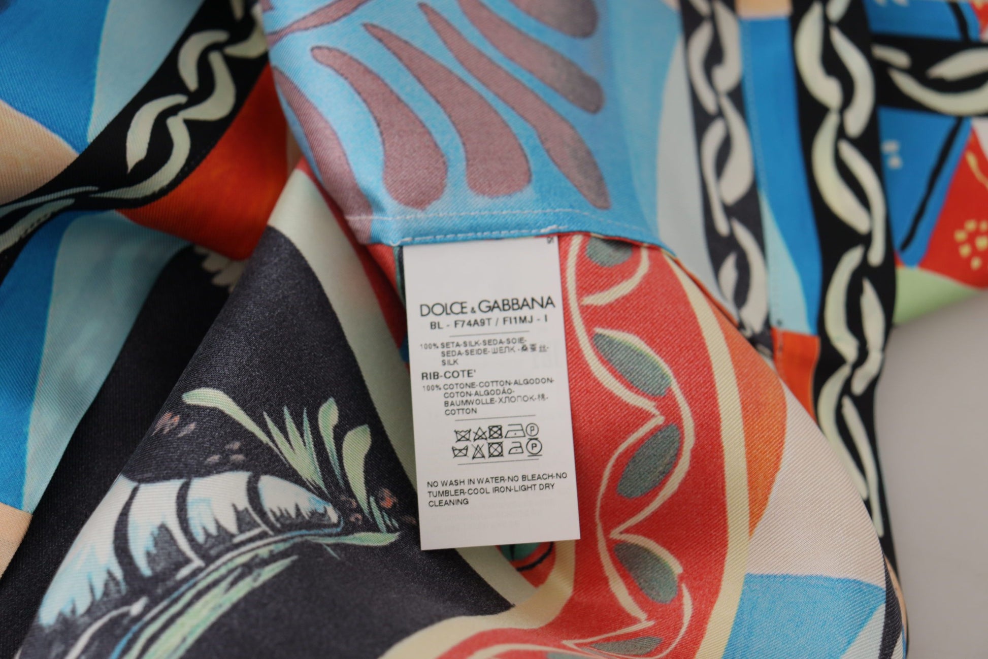 Dolce & Gabbana Mehrfarbiges Soldier Carretto Seidentop-T-Shirt