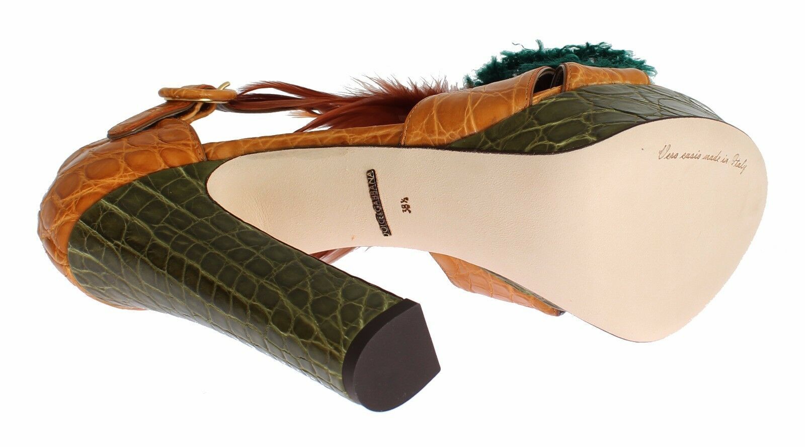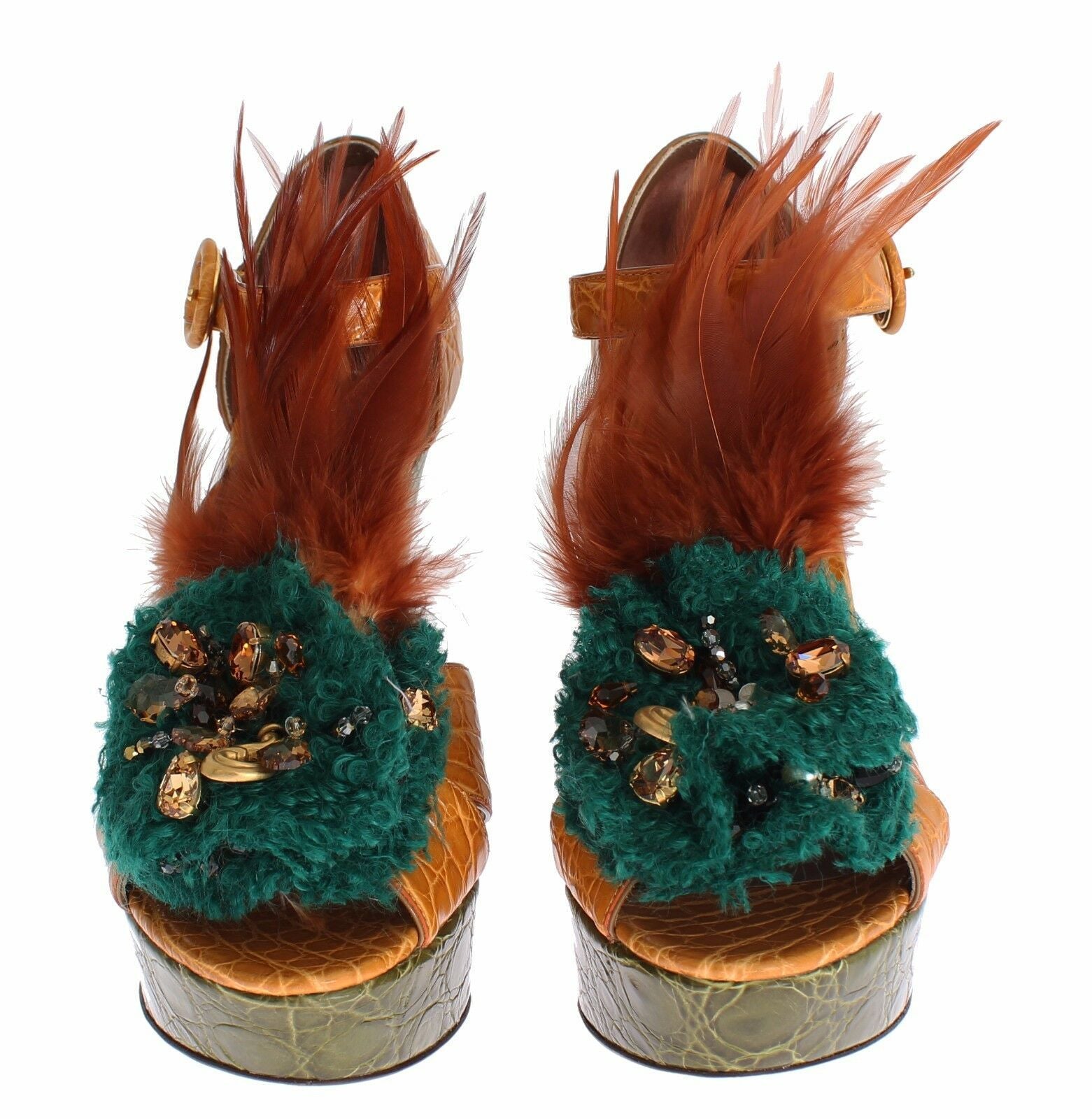Wunderschöne, brandneue, 100 % authentische Dolce & Gabbana-Sandalen mit mehrfarbigem Plateau und Knöchelriemen aus Kristallleder in Hautoptik. Dieser Artikel stammt aus der exklusiven MainLine-Kollektion von Dolce & Gabbana.