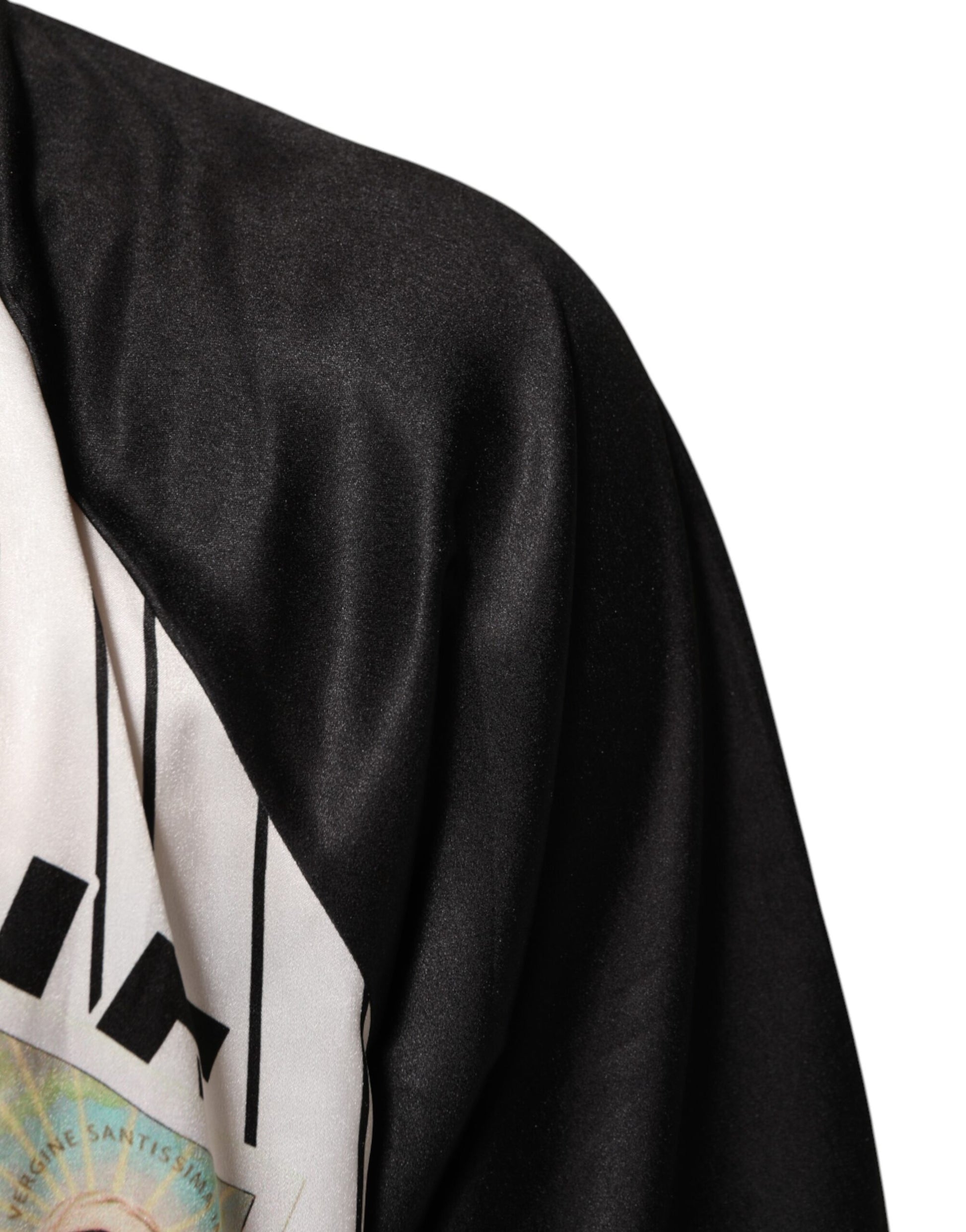 Wunderschönes, brandneues, 100 % authentisches Dolce & Gabbana T-Shirt „Tradizione“, ein Oversize-T-Shirt aus der Herrenkollektion. Das Shirt im Baseball-Trikot-Stil besticht durch ein markantes Nadelstreifenmuster, das durch schwarze Raglanärmel mit sportlichen Streifen kontrastiert wird. Die Vorderseite ist mit lebendigen, künstlerischen Grafiken im Graffiti-Stil verziert, darunter das charakteristische DG-Logo, religiöse und romantische Motive sowie ausdrucksstarke Texte wie „Tradizione“, „Mon Amour“, „Amore“ und „God the“.