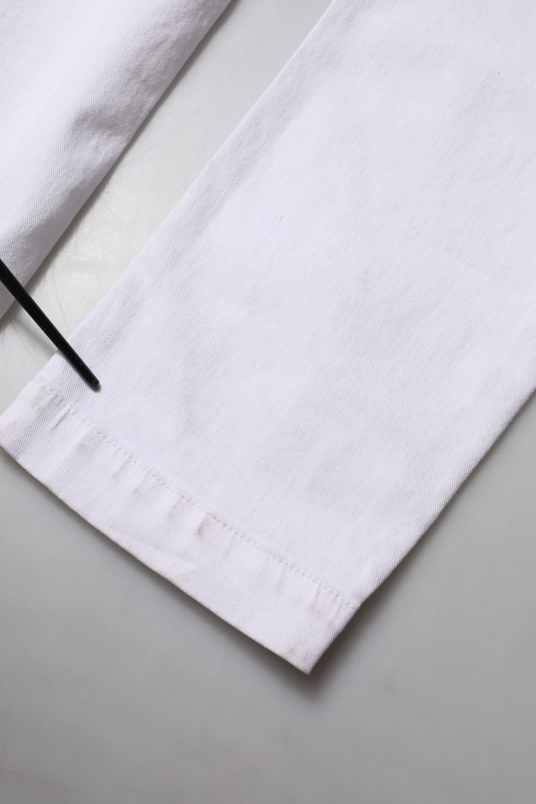 Dieser Artikel weist einen kleinen Defekt auf, es sind Markierungen am unteren Ende der Jeans vorhanden (Details siehe Bilder).