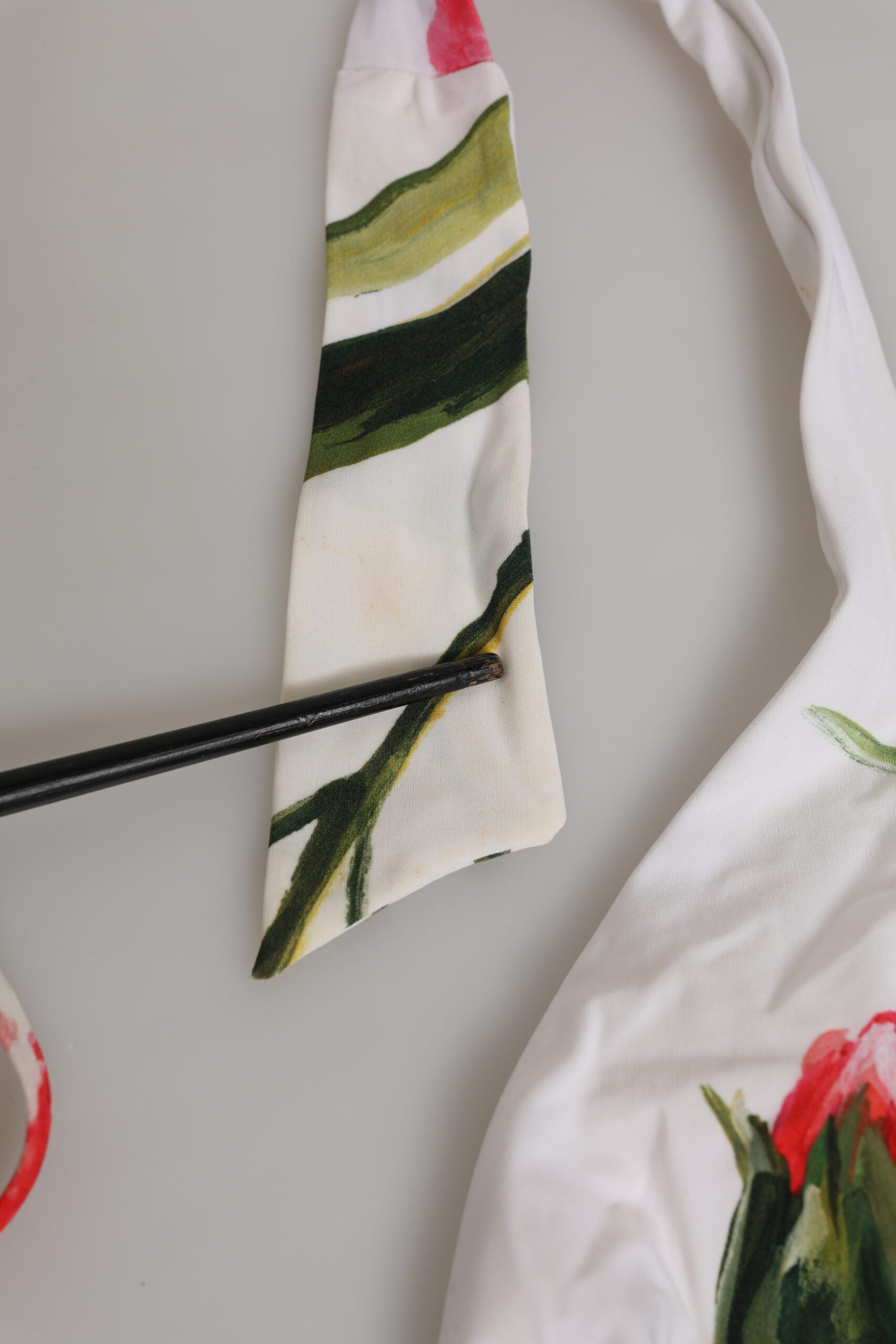 Dolce & Gabbana – Weißer Badeanzug mit Blumenmuster, 2-teilig, Oberteil und Unterteil