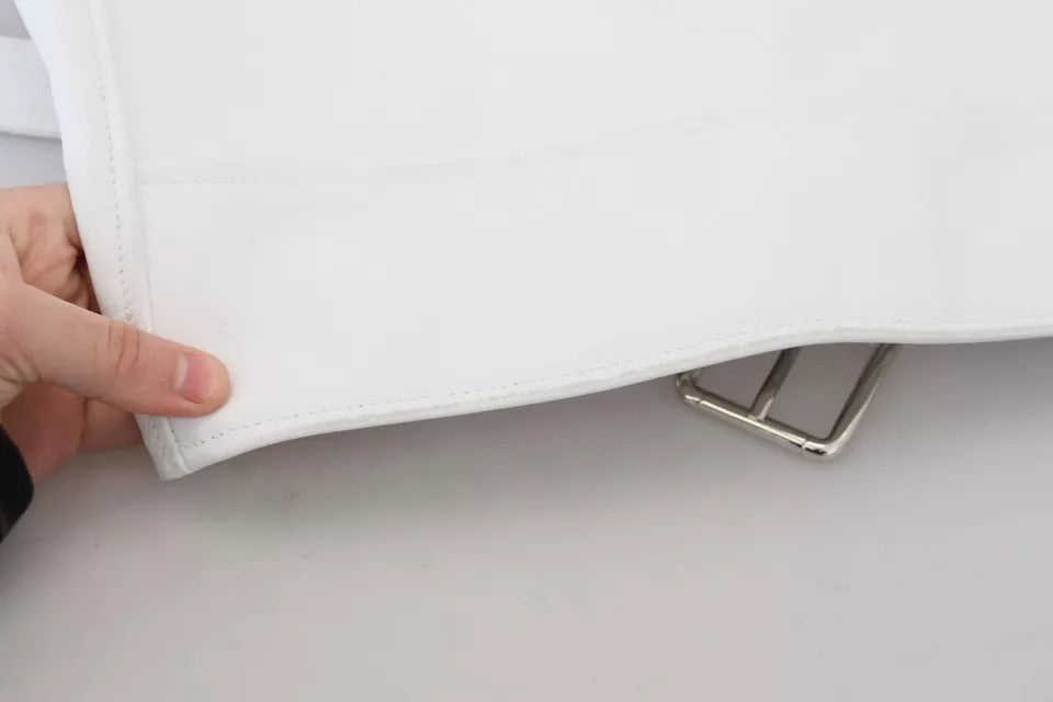 Absolut umwerfende, 100 % authentische weiße Lederjacke mit Gürtel von Dolce & Gabbana im Biker-Motorradstil.
