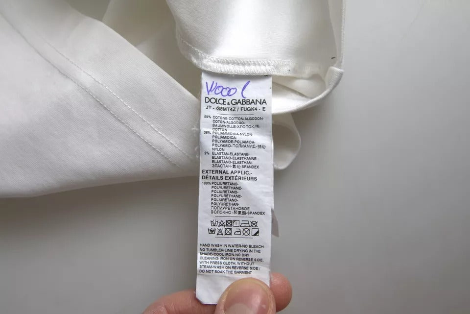 Dolce & Gabbana – Weißes Baumwoll-T-Shirt mit Rundhalsausschnitt und Logoprägung