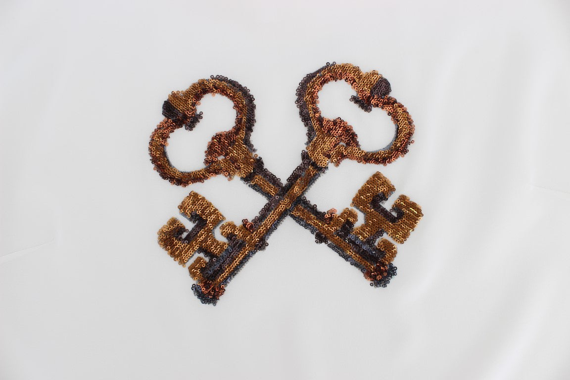 Wunderschönes, brandneues, 100 % authentisches, weißes Blusentop aus Seide mit Pailletten von DOLCE & GABBANA mit Etikett. Dieser Artikel stammt aus der exklusiven MainLine-Kollektion von Dolce & Gabbana.