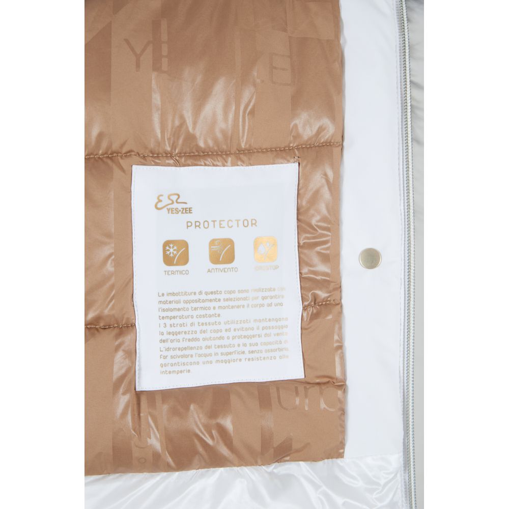 Erweitern Sie Ihre Oberbekleidungskollektion mit der luxuriösen Yes Zee Damenjacke. Sie vereint Stil und Funktionalität. Das technische Gewebe sorgt für Langlebigkeit, während die echte Gänsedaunenfüllung für unübertroffene Wärme sorgt. Mit einem flauschigen Pelzbesatz an der Kapuze und einem eleganten Reißverschluss mit Knopfverschluss vorne vereint diese Jacke Funktionalität mit High Fashion. Großzügiger Stauraum ist dezent mit Innentaschen und sicheren Seitentaschen mit Reißverschluss ausgestattet. Strahlen Sie in diesem makellos weißen Kleidungsstück, das Komfort und Eleganz zugleich ausstrahlt.