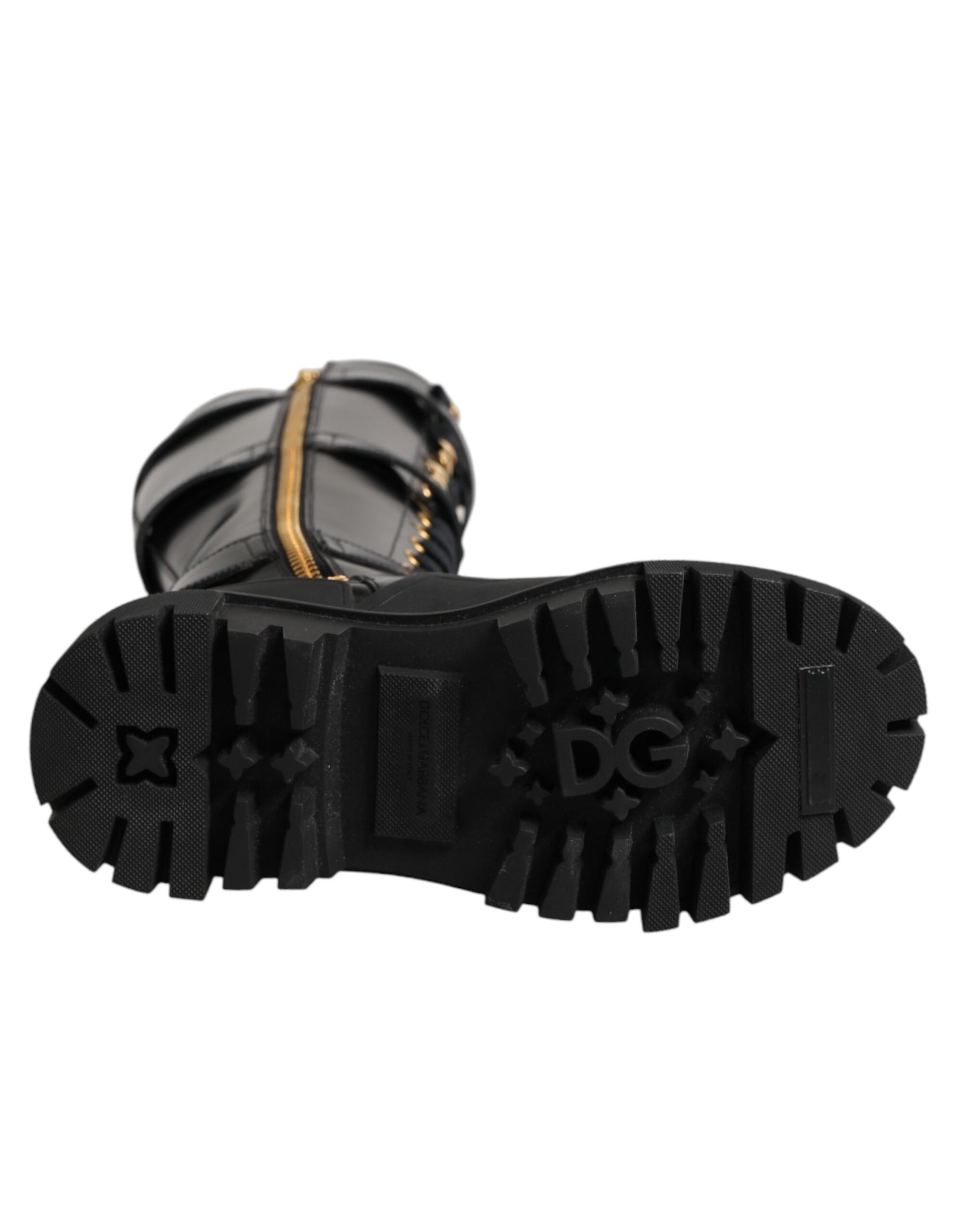 Dolce & Gabbana Black Buckle Embellished Knee High Boots Shoes