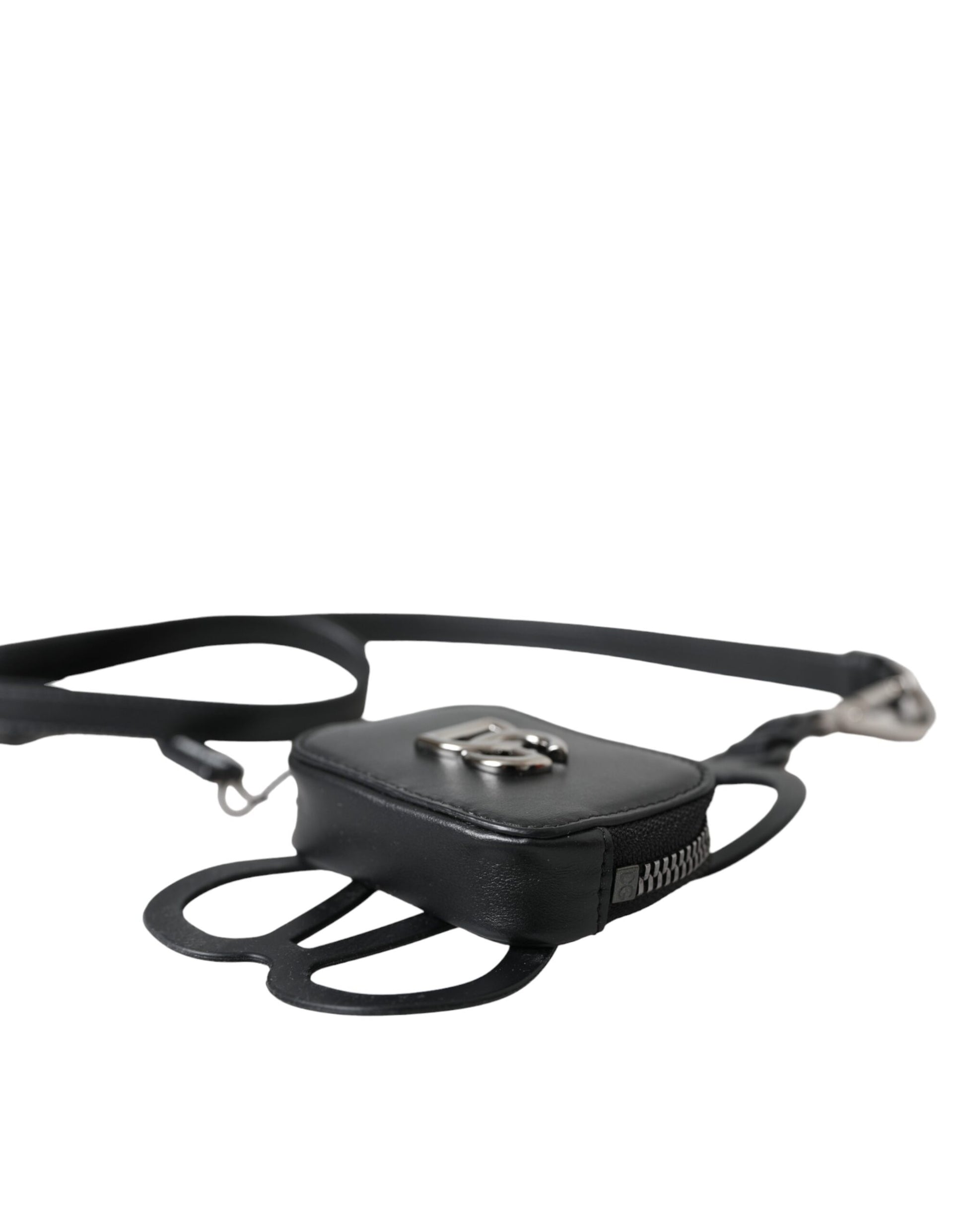 Dolce & Gabbana – Geldbörse mit DG-Logo aus schwarzem Kalbsleder und Schlüsselband