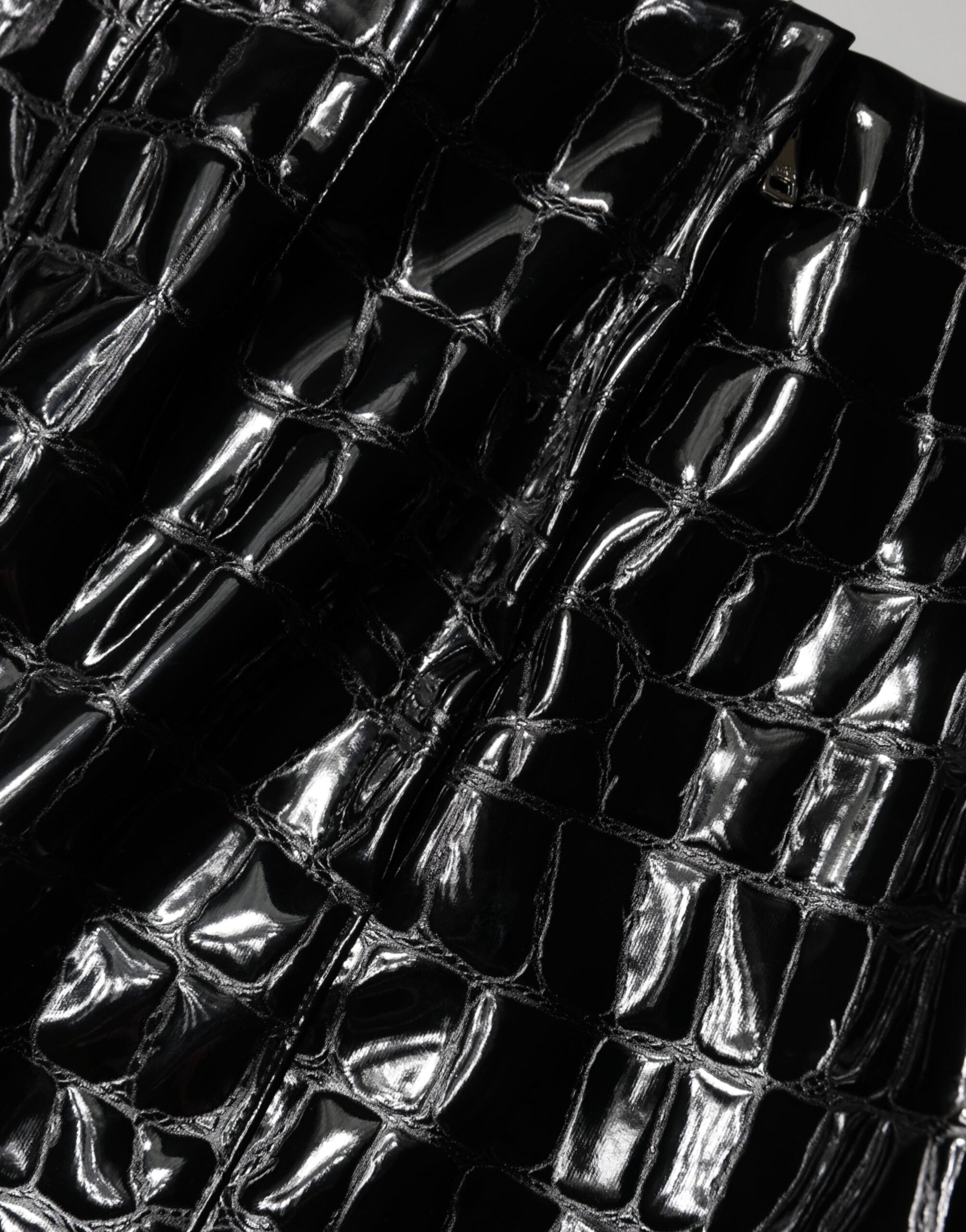 Dolce & Gabbana Black Croc Faux-Leather Mid Waist Midi Skirt
