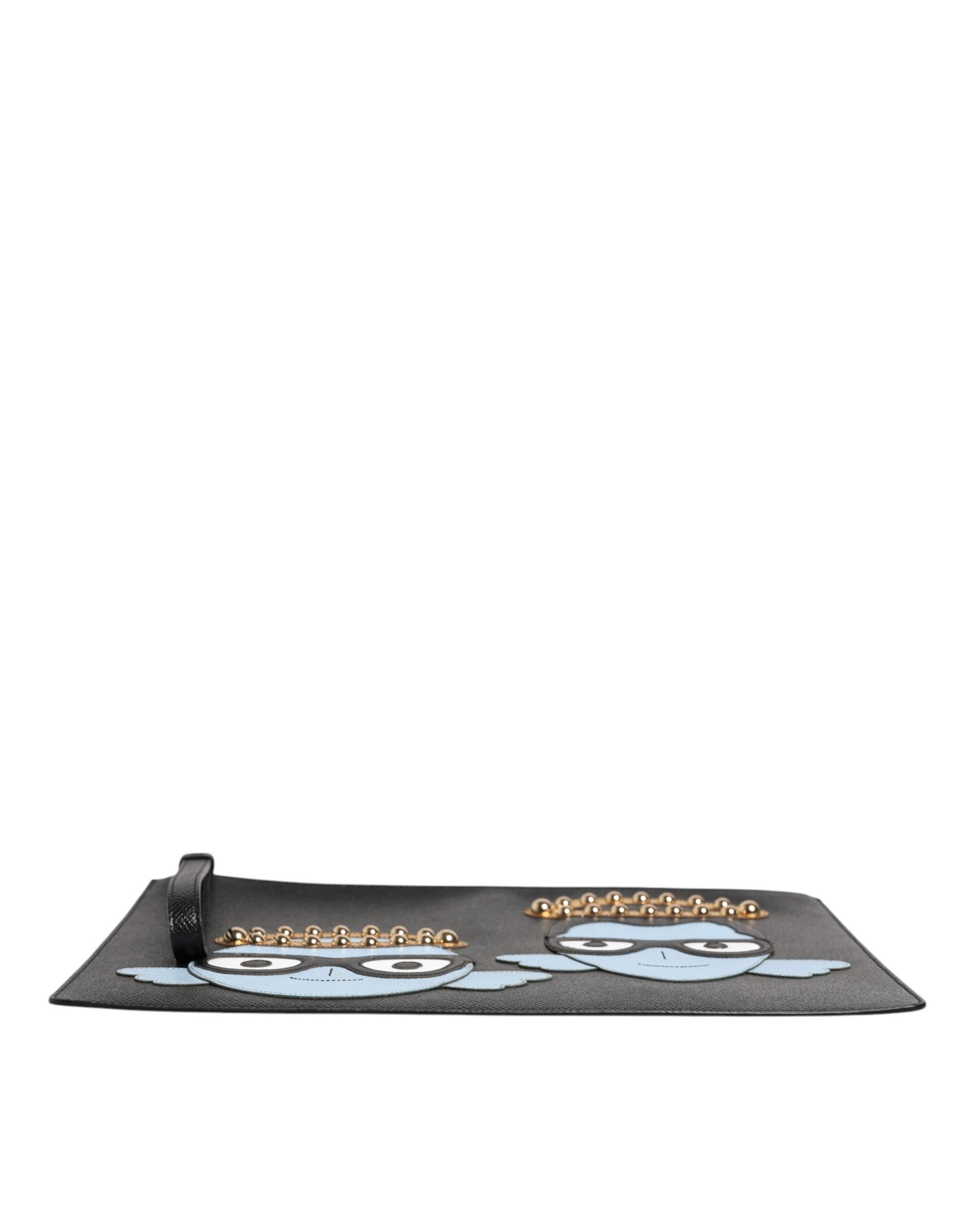 Dolce & Gabbana Schwarzes Leder #DGFAMILY Verzierte Herren-Tasche mit Reißverschluss