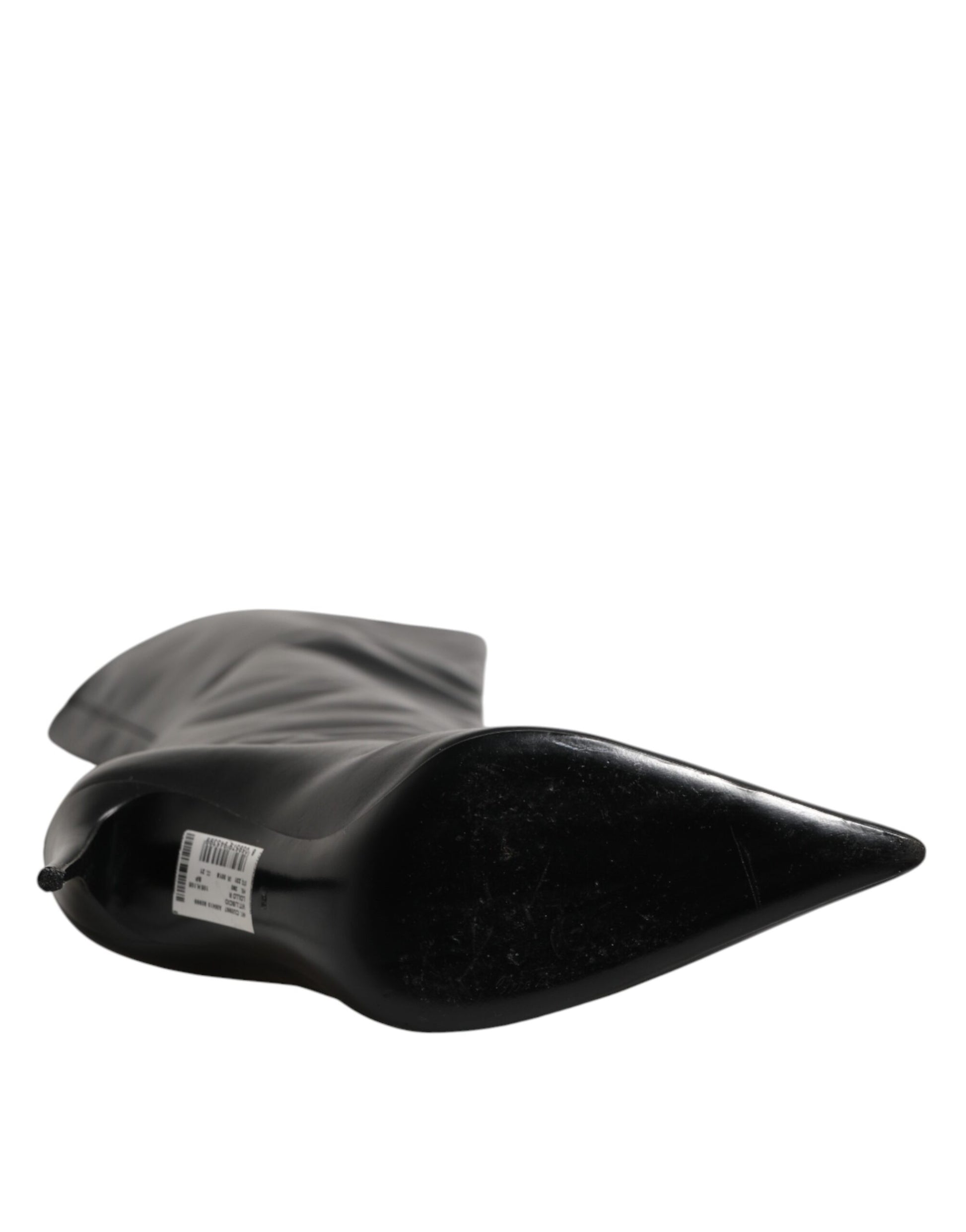 Dolce & Gabbana Black Leather Stiletto Knee High Boots Shoes