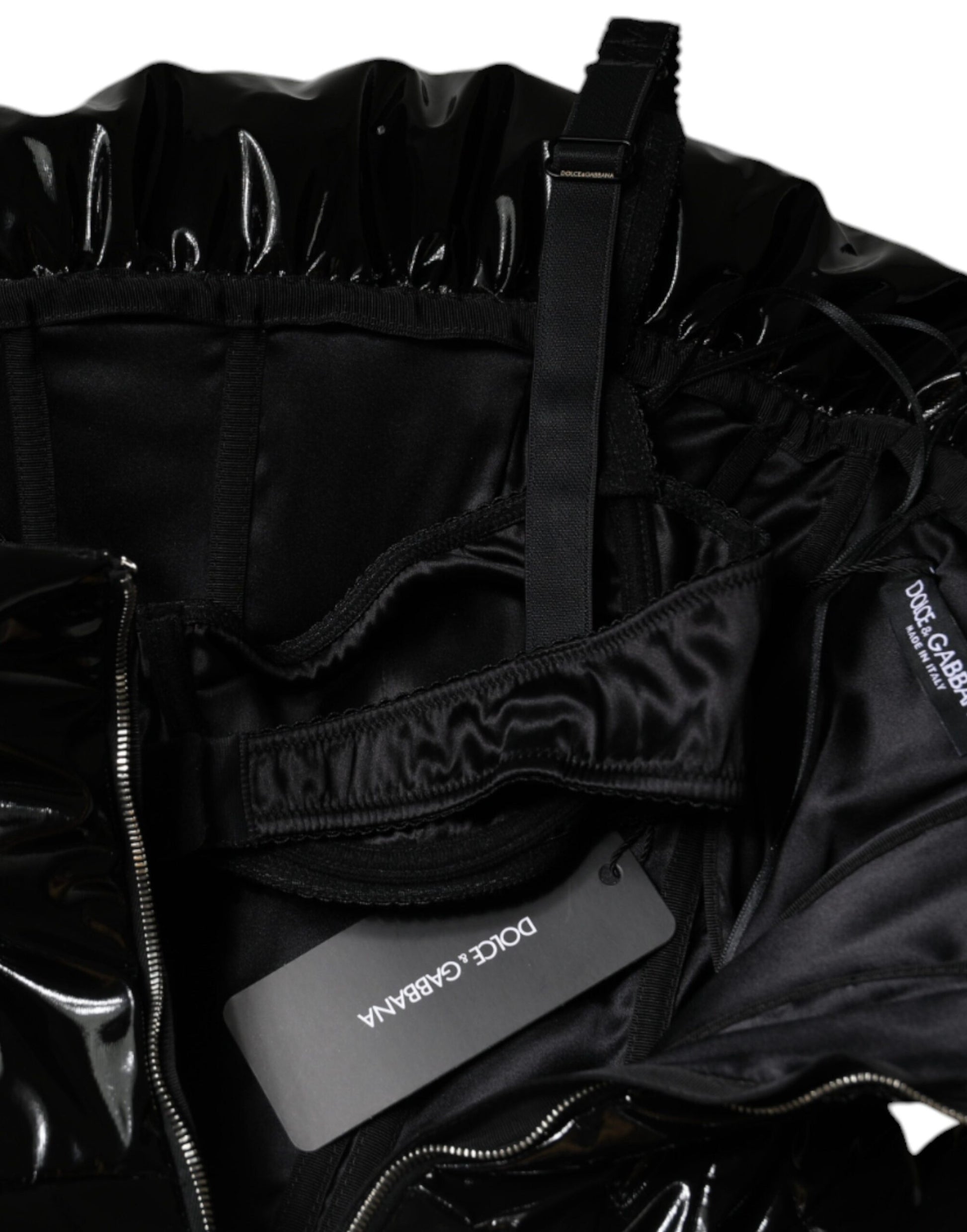 Wunderschönes, brandneues, 100 % authentisches, gerüschtes, beschichtetes Minikleid von Dolce & Gabbana mit Etikett. Modell: Ärmelloses Minikleid Farbe: Schwarz Material: 62 % Polyester, 38 % PU Futter: 92 % Seide, 8 % Elastan Reißverschluss auf der Rückseite Logodetails Hergestellt in Italien Sehr exklusiv und hochwertig verarbeitet