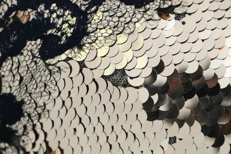 Bei diesem Kleid fehlen an zwei Stellen Pailletten (Details siehe Bilder).