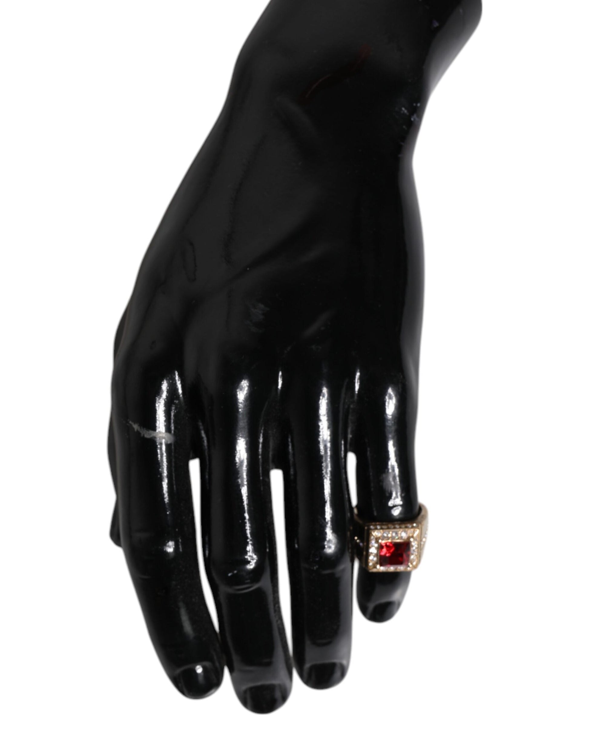 Wunderschöner, brandneuer, 100 % authentischer Dolce & Gabbana-Ring aus goldfarbenem Sterlingsilber 925 mit Kristallen und Etikett. Farbe: Gold Kristall: Rot Material: 70 % Sterling Silber 925, 30 % Glas Logodetails Hergestellt in Italien