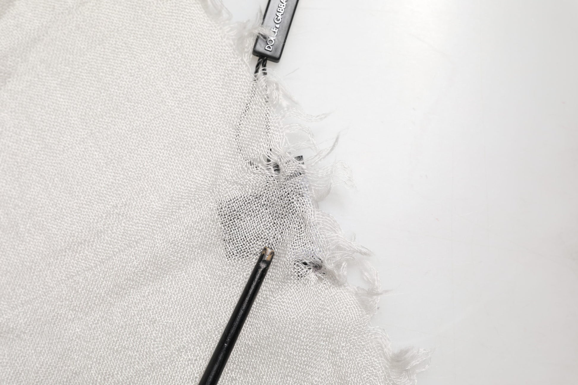 This item has a minor defect, there are pulled threads on the scarf (see pictures for details).