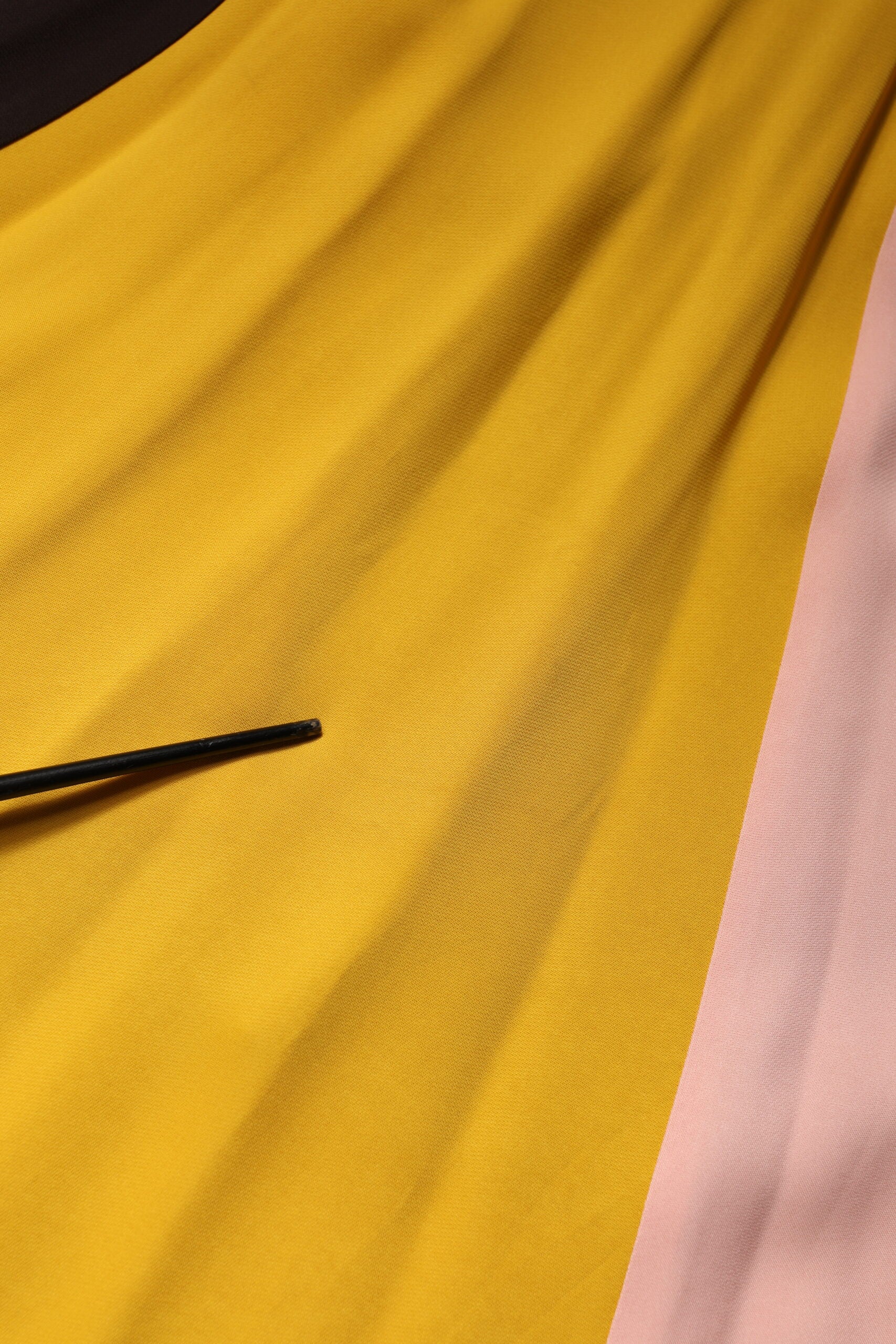 midi skirt features a multicolor viscose fabric with delicate pleats for graceful movement. Designed with a high waist, it blends playful patterning with refined tailoring for a sophisticated, fashion-forward look.