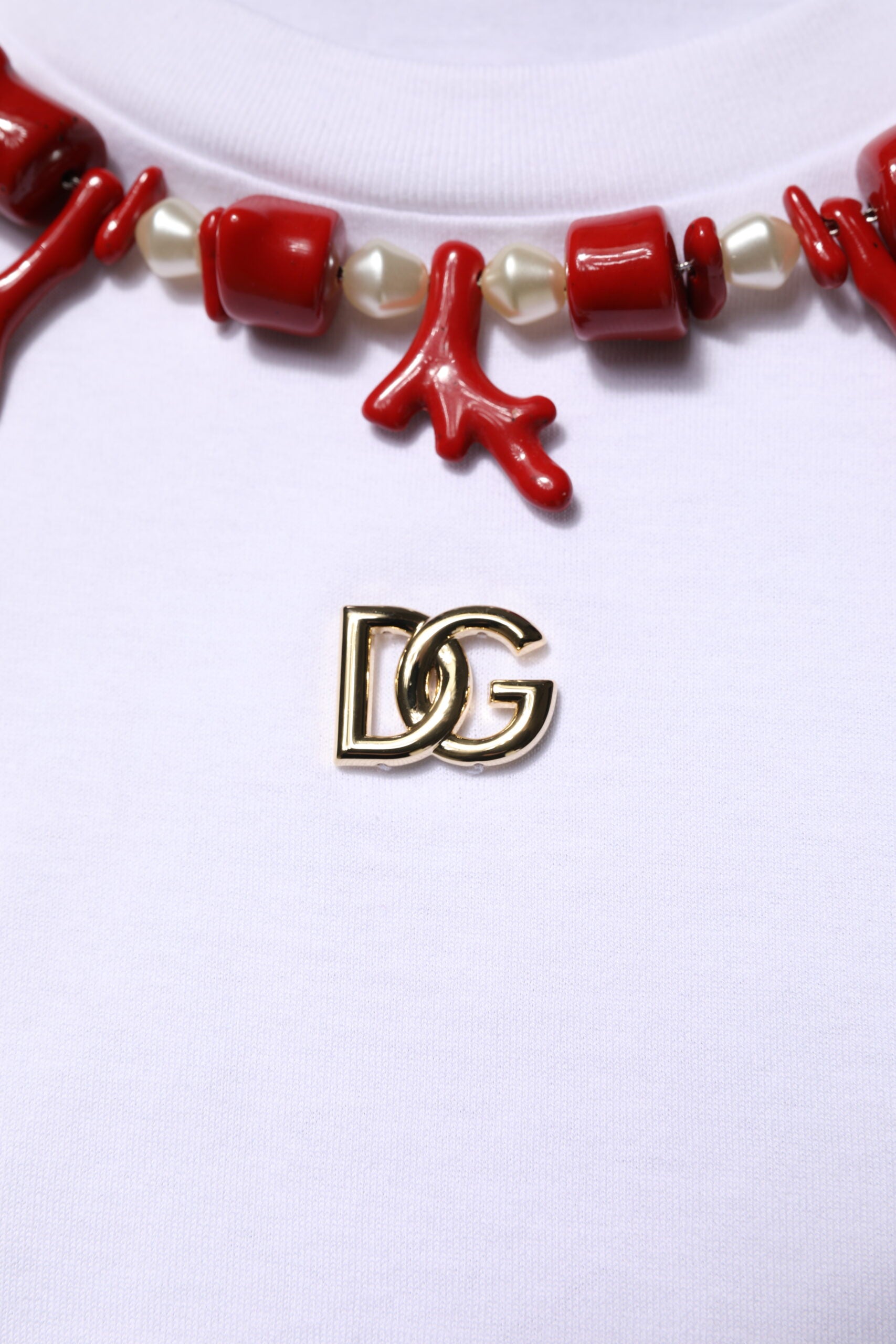 Wunderschönes, brandneues, 100 % authentisches T-Shirt aus Baumwolle mit Rundhalsausschnitt und Verzierungen von Dolce & Gabbana. Modell: Kurzarm-T-Shirt mit Rundhalsausschnitt Farbe: Weiß Material: 100% Baumwolle Passform: Normale Passform Logodetails Hergestellt in Italien