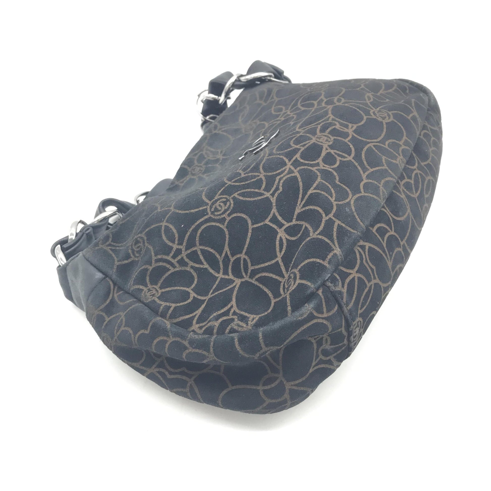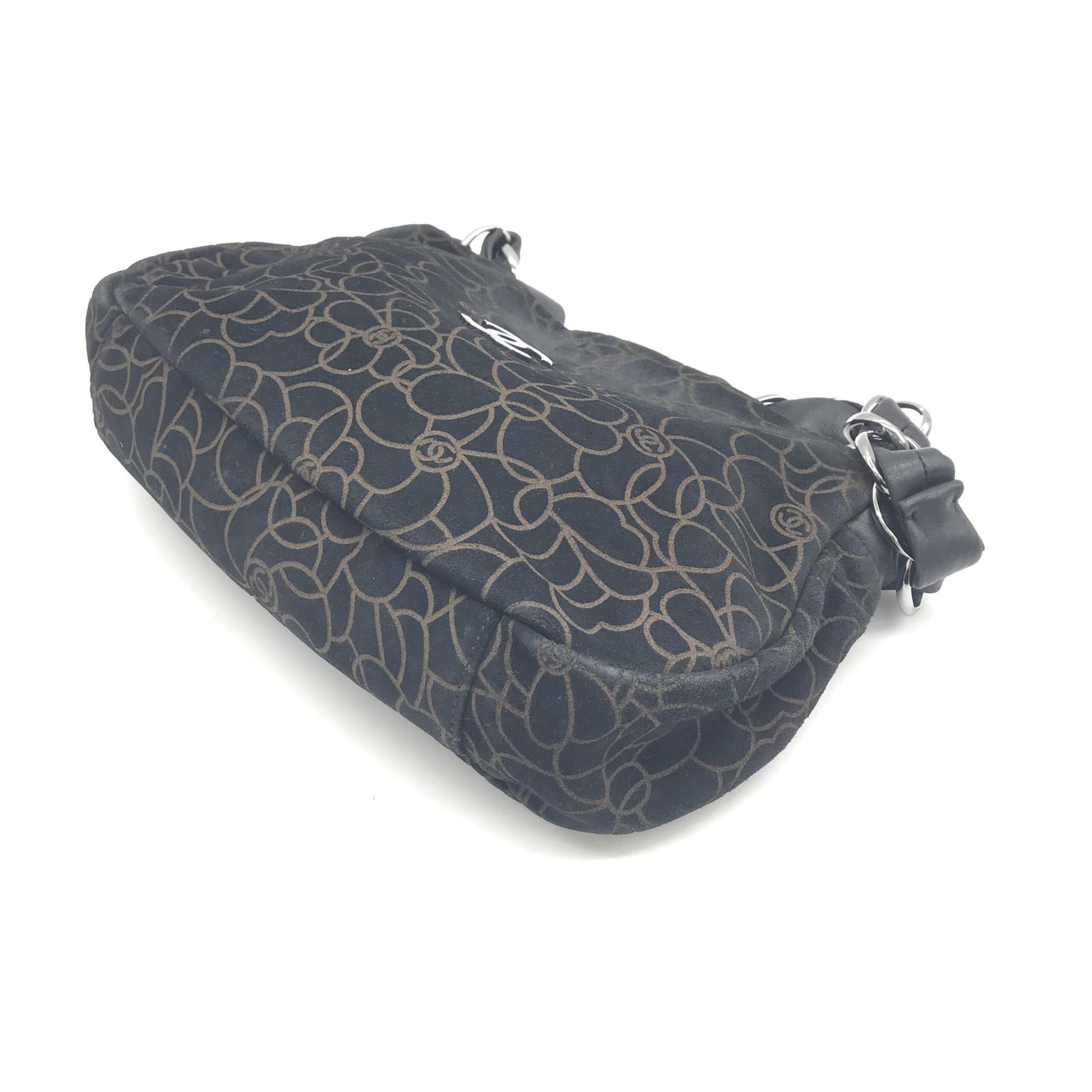 Chanel Camellia Chain Black Suede Shoulder Bag With Logo