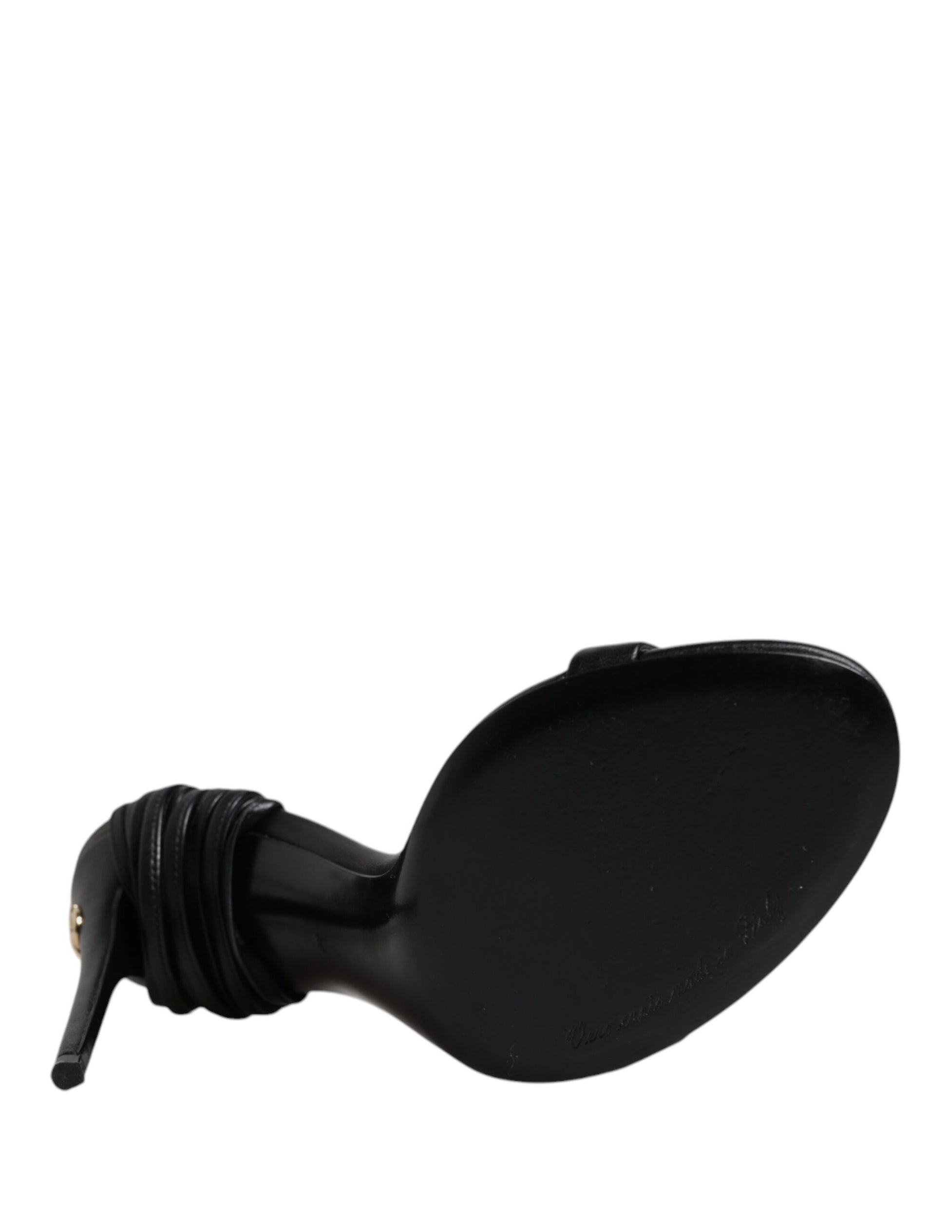 Die Sandalen sind aus glattem schwarzem Leder gefertigt und stehen auf eleganten Stilettoabsätzen. Mit ihrer raffinierten Silhouette verkörpern sie die für Dolce & Gabbana typische Mischung aus Eleganz und Weiblichkeit.