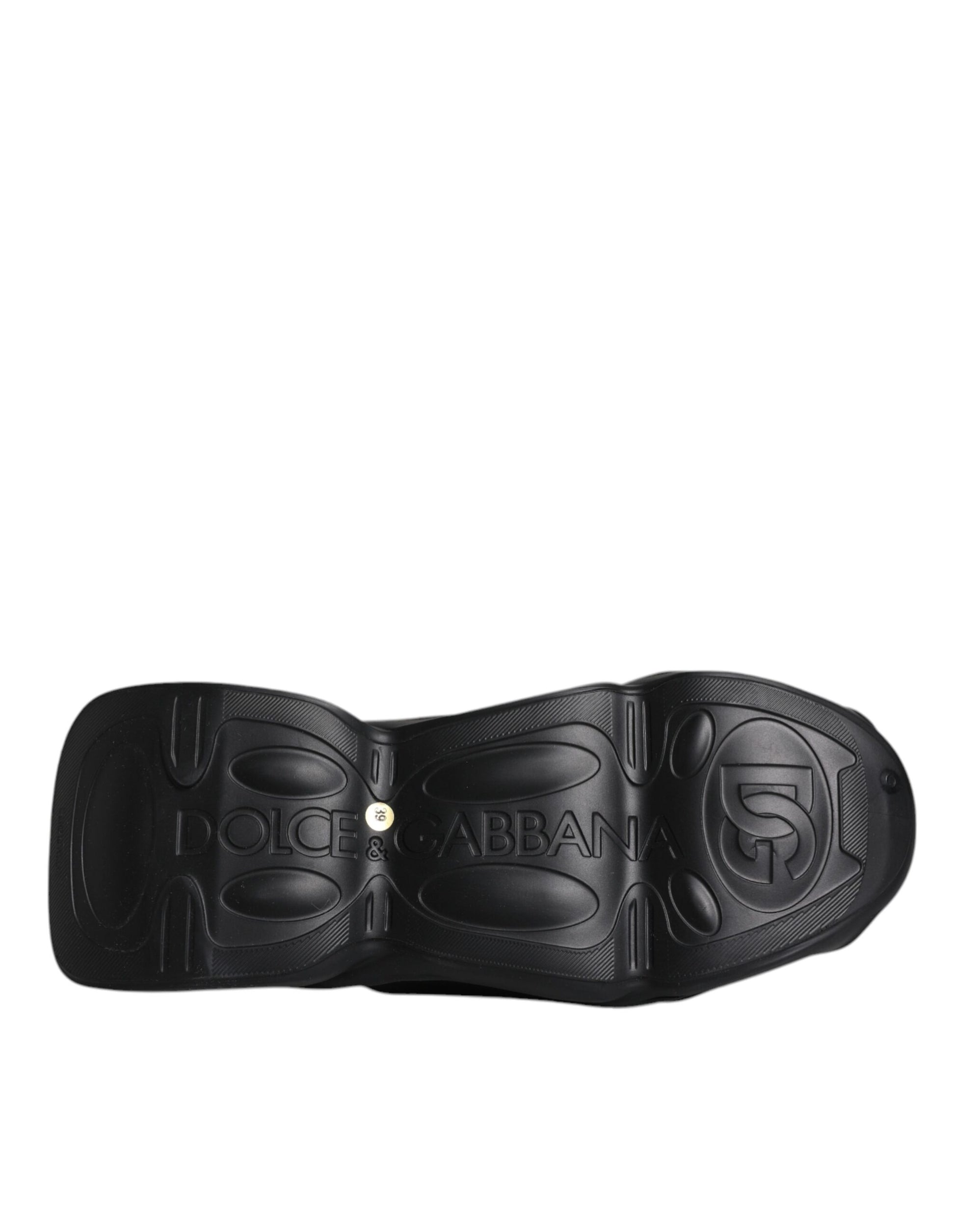Wunderschöne, brandneue Low-Top-Sneaker-Schuhe von Dolce & Gabbana mit Etikett, 100 % authentisch. Modell: Low-Top-Sneaker Material: 95 % Polyester, 5 % Viskose Farbe: Schwarz Gummisohle Logodetails Hergestellt in Italien Sehr exklusiv und hochwertig verarbeitet