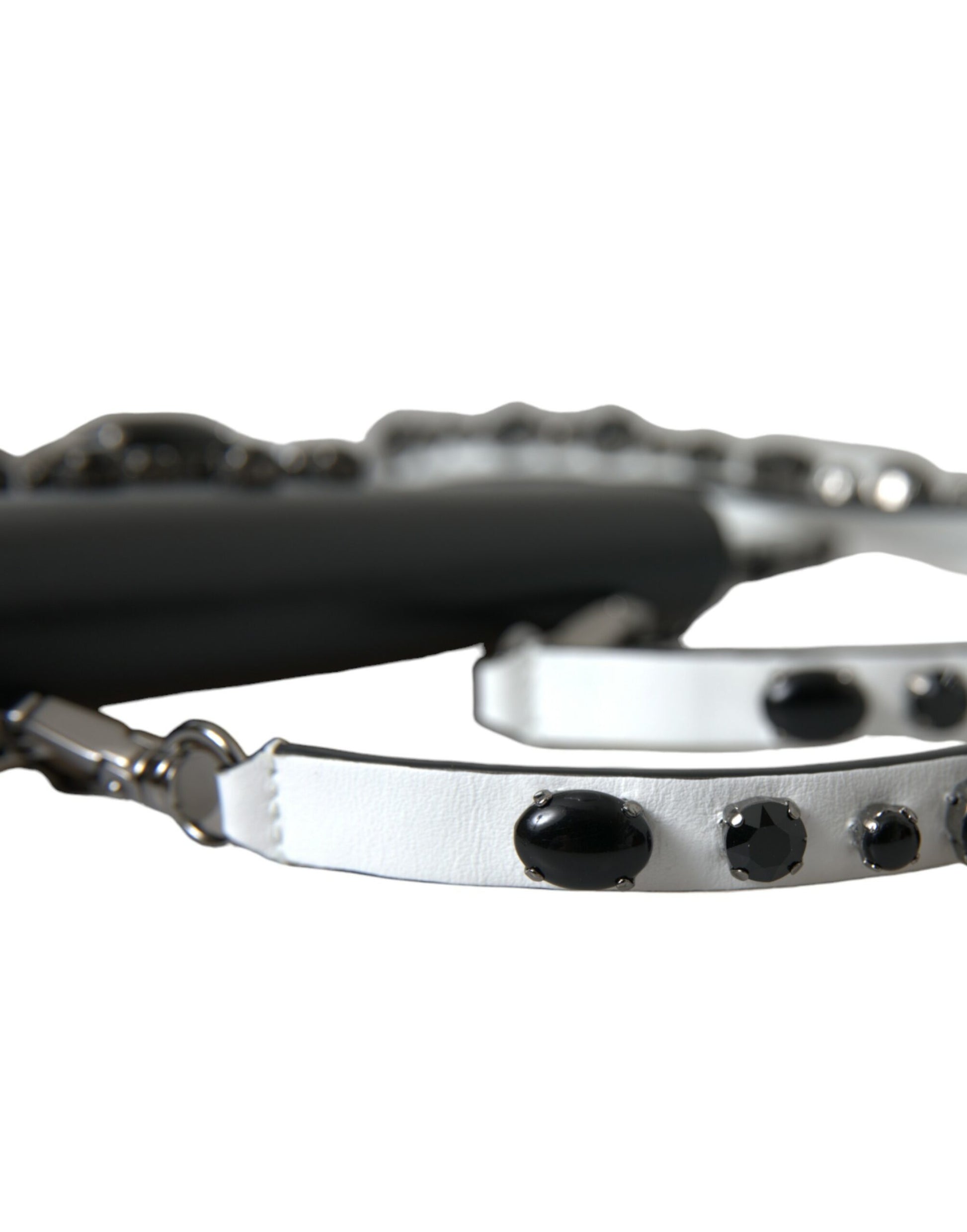 Wunderschönes, brandneues Kartenetui aus 100 % authentischem Kalbsleder von Dolce & Gabbana mit Etikett, Kristallverzierung, Druckknopfverschluss, internen Kartenfächern und abnehmbarem Umhängeband.