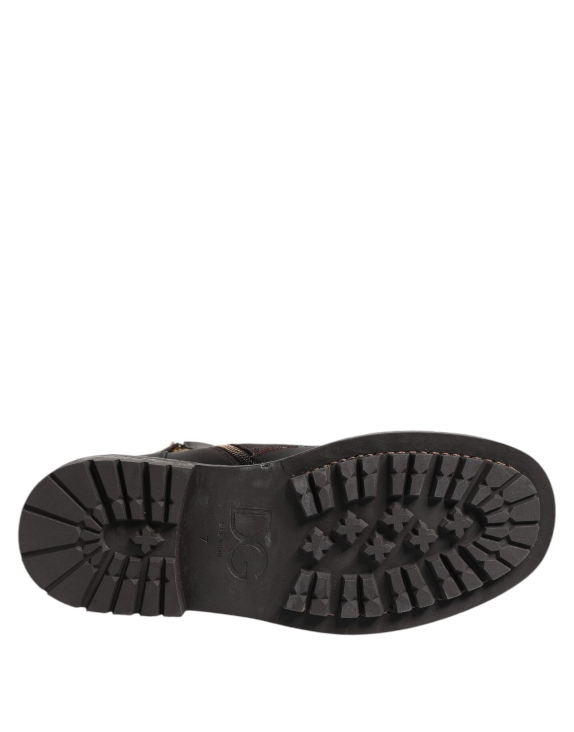Wunderschöne, brandneue, 100 % authentische Dolce & Gabbana-Stiefel für Herren mit halbhoher Sohle. Modell: Wadenhohe Stiefel Farbe: Dunkelbraun Material: 100 % Kalbsleder Lederlaufsohle Schnürverschluss Logodetails Hergestellt in Italien Sehr exklusiv und hochwertig verarbeitet