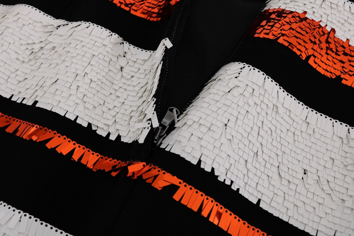 Wunderschönes, brandneues, 100 % authentisches, weiß-orange-schwarz gestreiftes Etuikleid von Dolce & Gabbana mit Etikett.