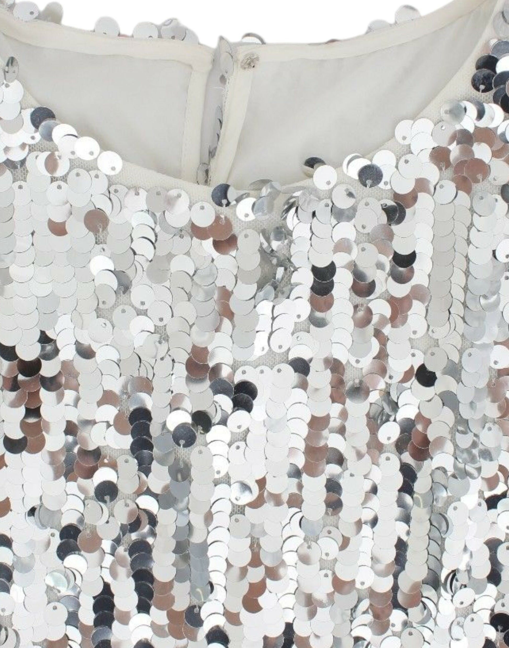 Wunderschönes, brandneues, 100 % authentisches weißes Blusentop von Dolce & Gabbana mit silbernen Pailletten für Party und Abend. Dieser Artikel stammt aus der exklusiven MainLine-Kollektion von Dolce & Gabbana.