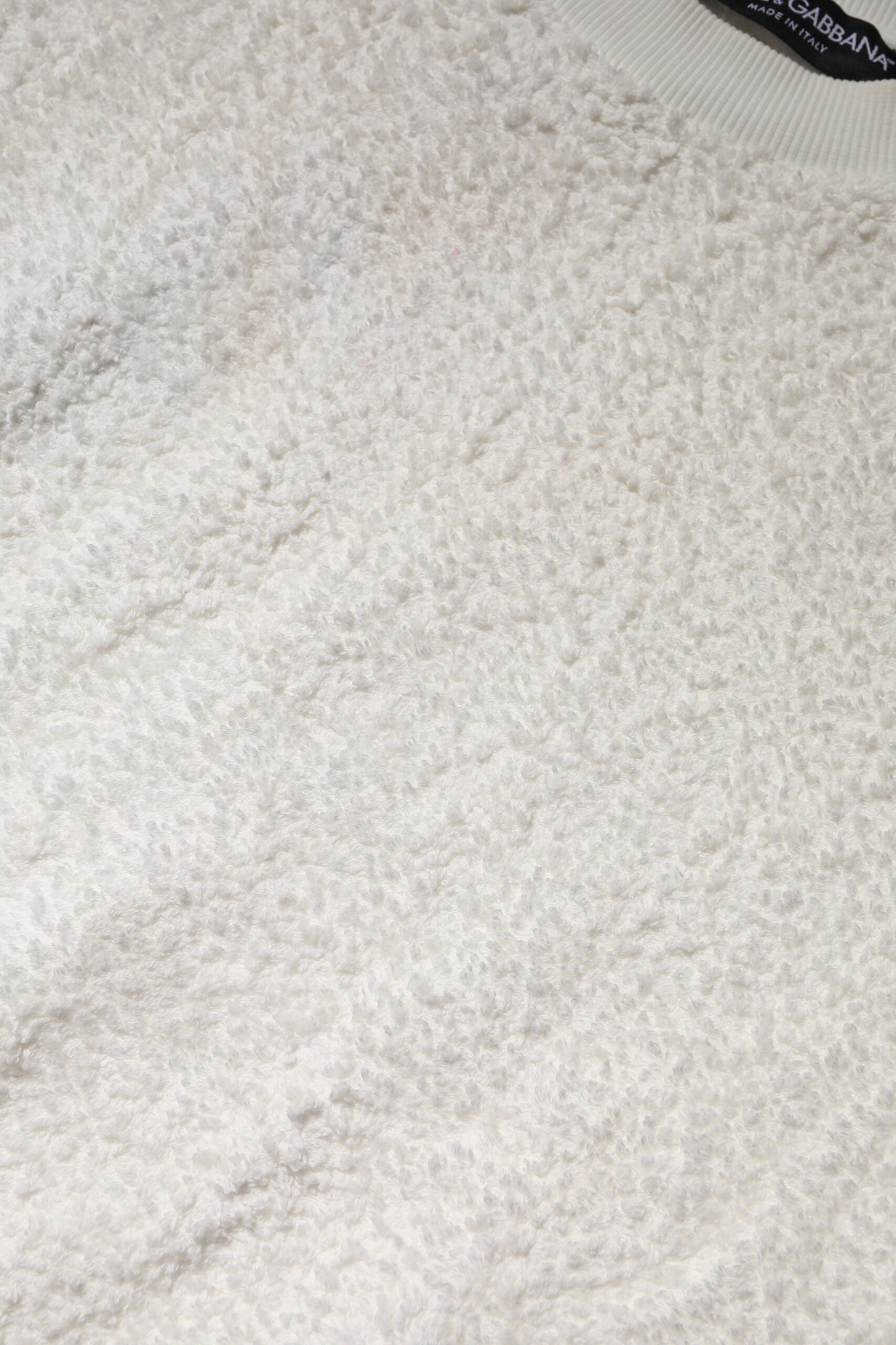 Dolce & Gabbana – Weißer Pullover aus Baumwollfleece mit Rundhalsausschnitt
