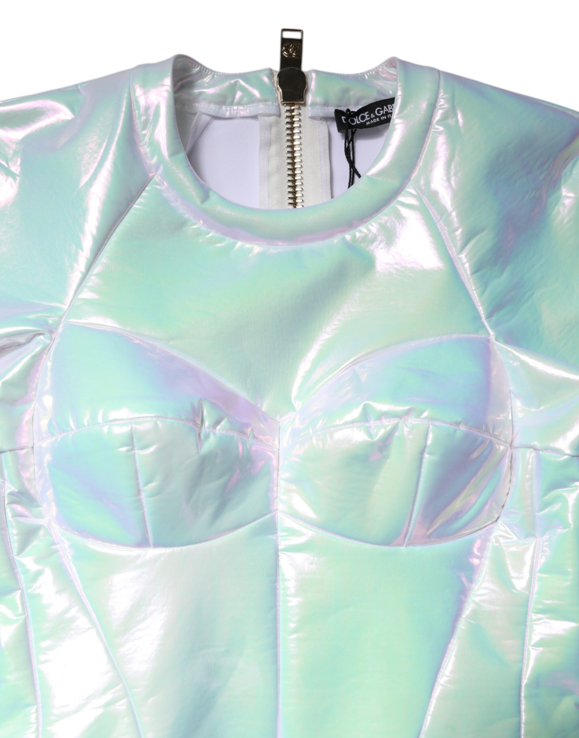 Wunderschönes, brandneues, 100 % authentisches, figurbetontes Minikleid von Dolce & Gabbana. Modell: Minikleid Farbe: Weiß Material: 85 % Polyester, 15 % Elasthan Reißverschluss Logodetails Hergestellt in Italien Sehr exklusiv und hochwertig verarbeitet