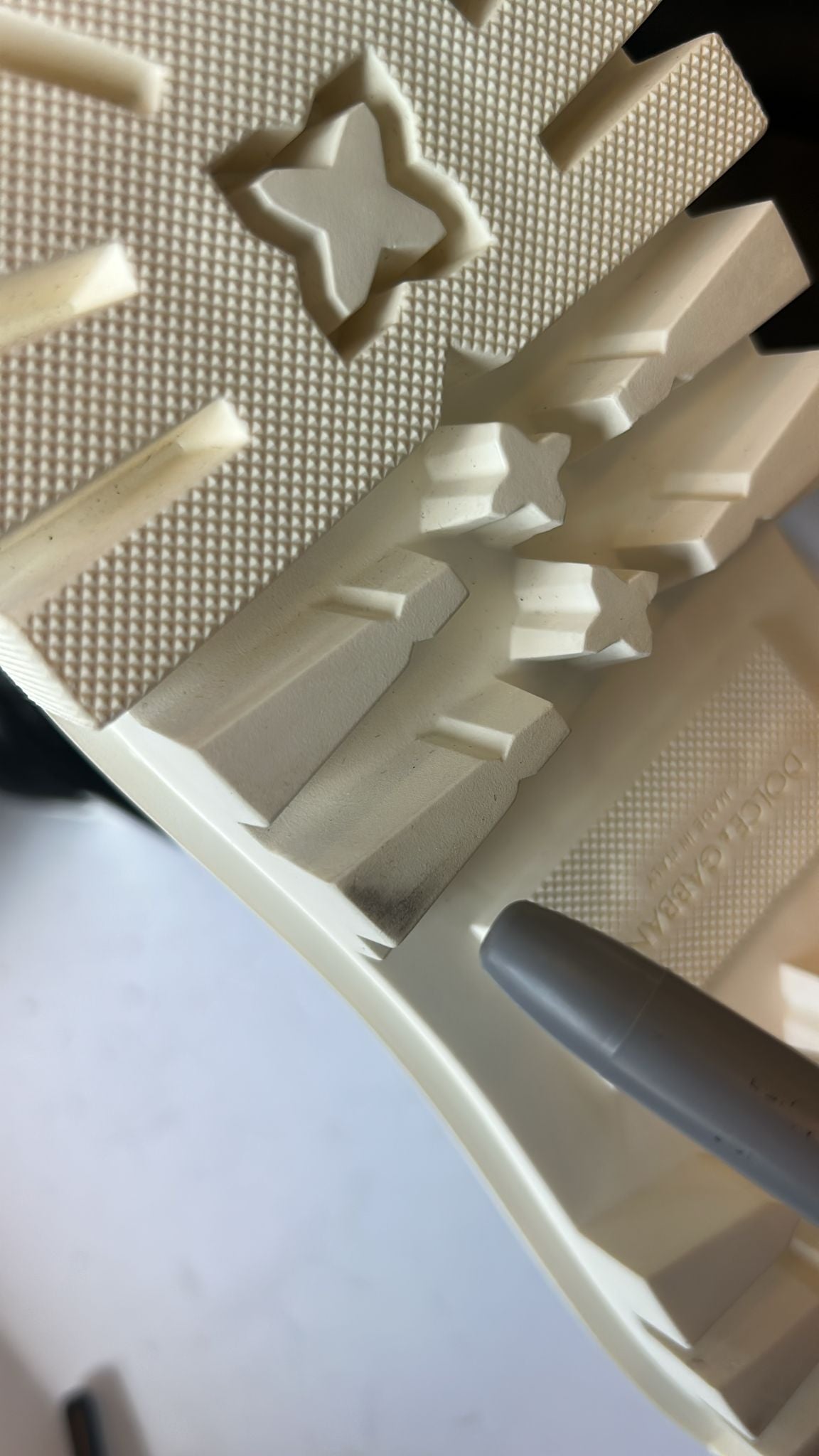 Dieser Artikel weist einen Defekt auf. Auf den rechten Schuhen befinden sich winzige Klebespuren und auf der Sohle eine winzige Markierung (Details siehe Bilder).