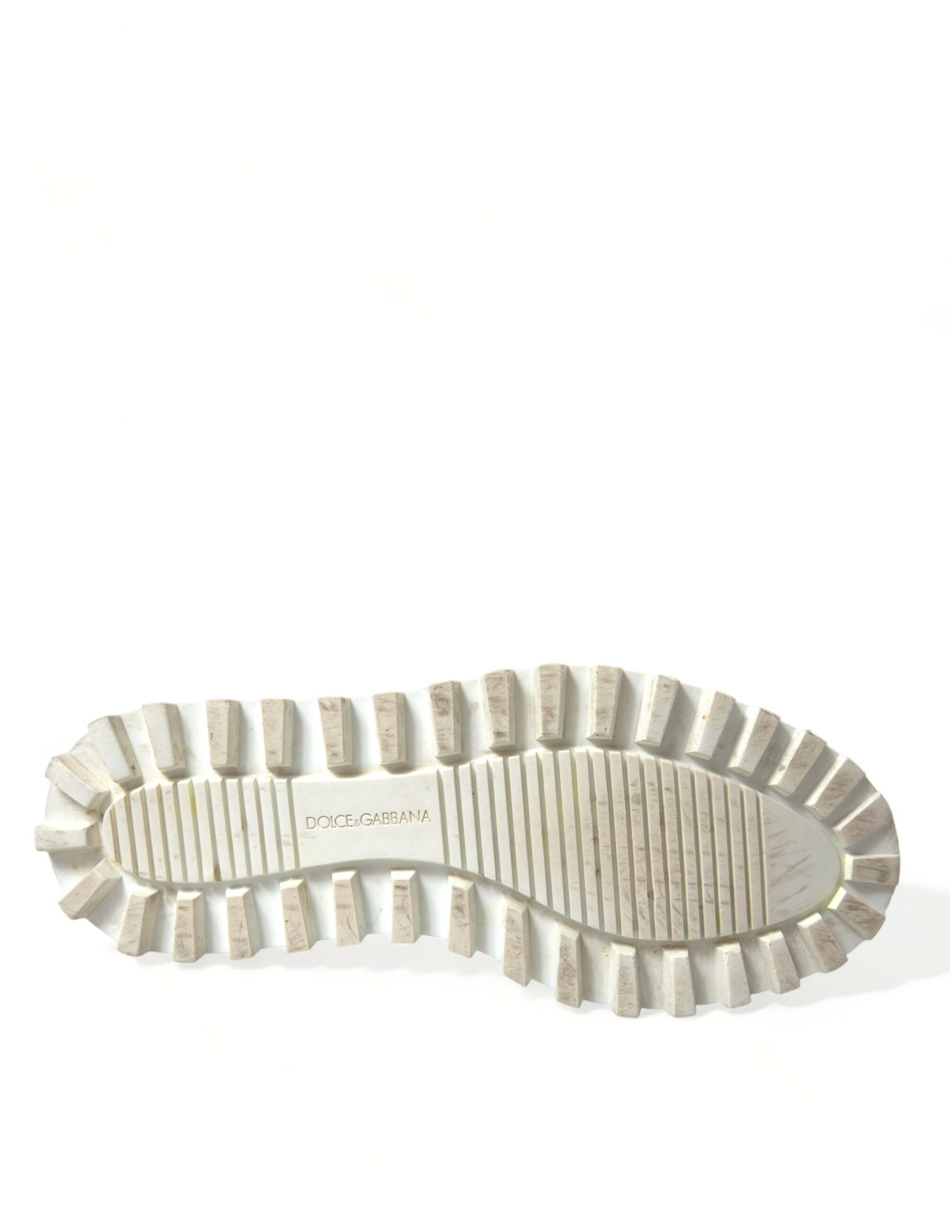 Wunderschöne, gebrauchte Stiefel mit Etikett, 100 % authentische weiße Vulcano-Trekkingstiefel von Dolce & Gabbana, aus Leder gefertigt und mit runder Zehenpartie, geriffelter Gummisohle, Schnürung vorne, Knöchellänge und Logodetails an der Seite und hinten.