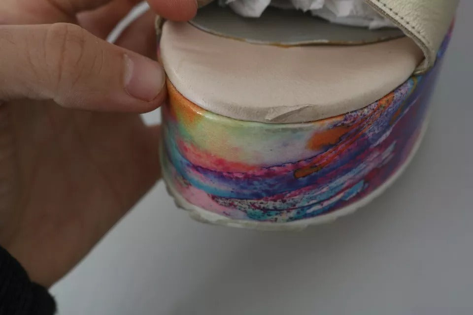 Wunderschöne gebrauchte, 100 % authentische EBARRITO Damenschuhe. Der elastische Slingback-Absatz sorgt für perfekten Sitz. Das offene Tragegefühl und das robuste Keildesign kombiniert mit einem farbenfrohen Muster machen die Schuhe zu einer soliden Wahl für all Ihre Outfits in diesem Frühjahr und Sommer.
