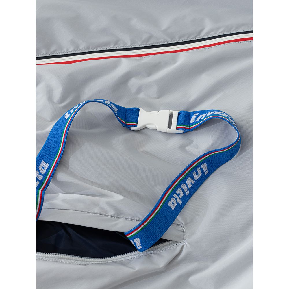 Frontverschluss mit Ton-in-Ton-Reißverschluss, kontrastierende Paspelierung entlang des Reißverschlusses, zwei seitliche Leistentaschen mit Reißverschluss, dünner elastischer Bund, Kapuze mit innenliegendem Gummizug. Innentasche mit Verschluss, kontrastierendes Futter mit Maxi-Logo, wasserabweisendes Funktionsgewebe. In der Tasche befindet sich ein Markenband zum Falten des Kleidungsstücks. Zusammensetzung: 100 % Polyamid.