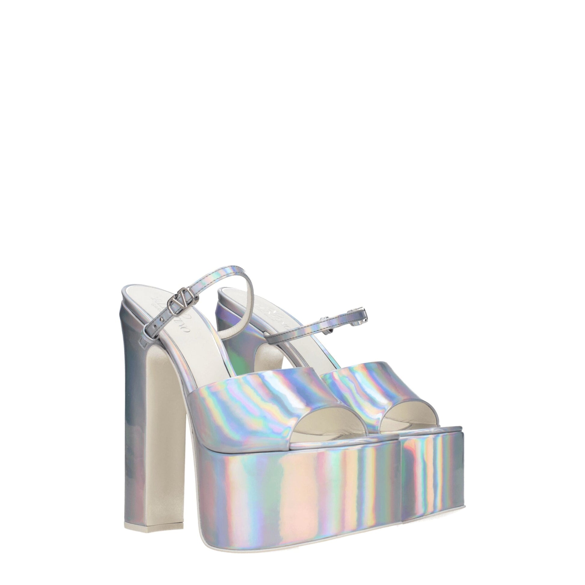 Das Produkt mit MPN S0FS4AJJS13 und Code F79332aus Lackleder in Silber ist eine Sandale von Valentino Garavani . Es verfügt über Merkmale wie Seitendetails und Metallic-Effekt .